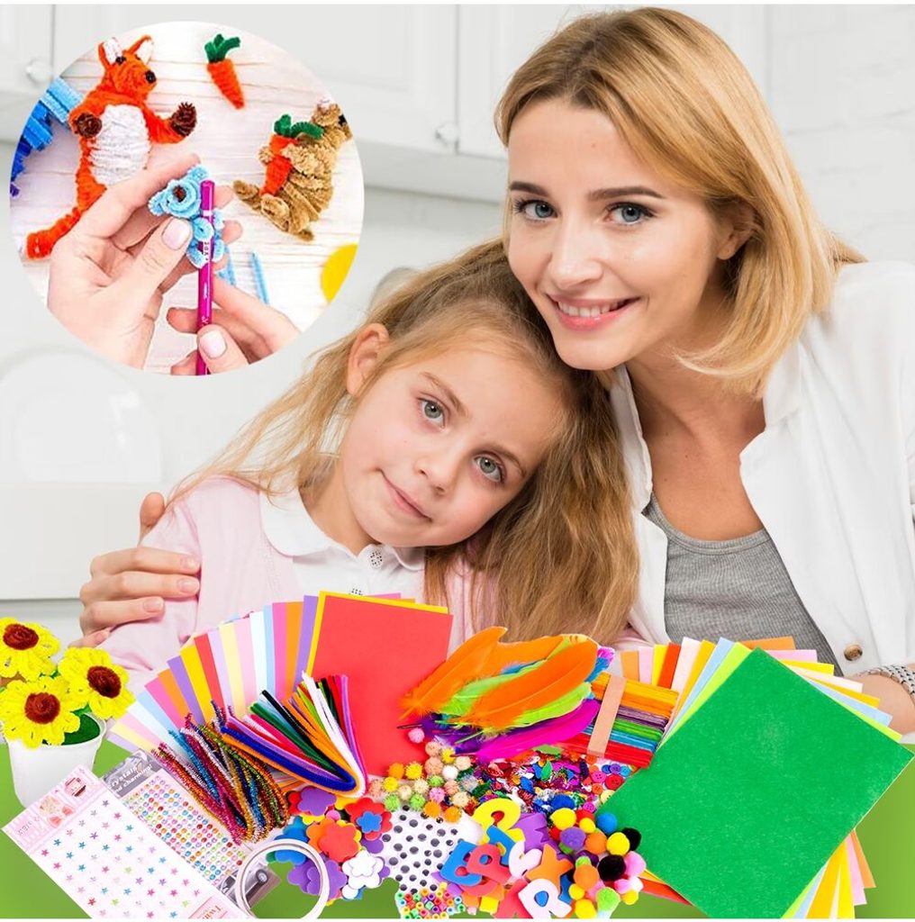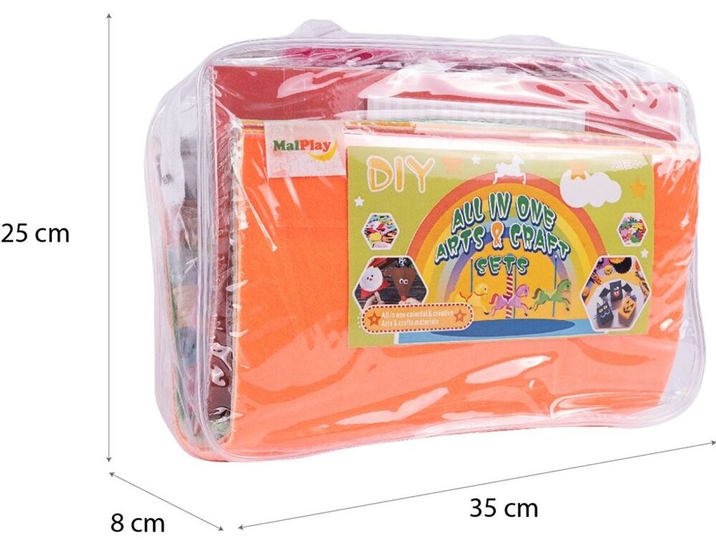 Velká kreativní sada Mega Kraft Kit se skládá z 1120 součástí, včetně barevných tyčinek, bambulí různých velikostí, peříček, samolepicích třpytivých samolepek, drátěných tyčinek s velkým a malým okem které jsou potažené různými barvami materiálu. Lze je využít k výrobě figurek nebo jiných ručních prací.Prvky obsažené v sadě jsou umístěny v sáčcích podle typu a účelu, což usnadní organizaci práci a kreativní zábavu. Sada je určena pro děti od 6 let věku.V
