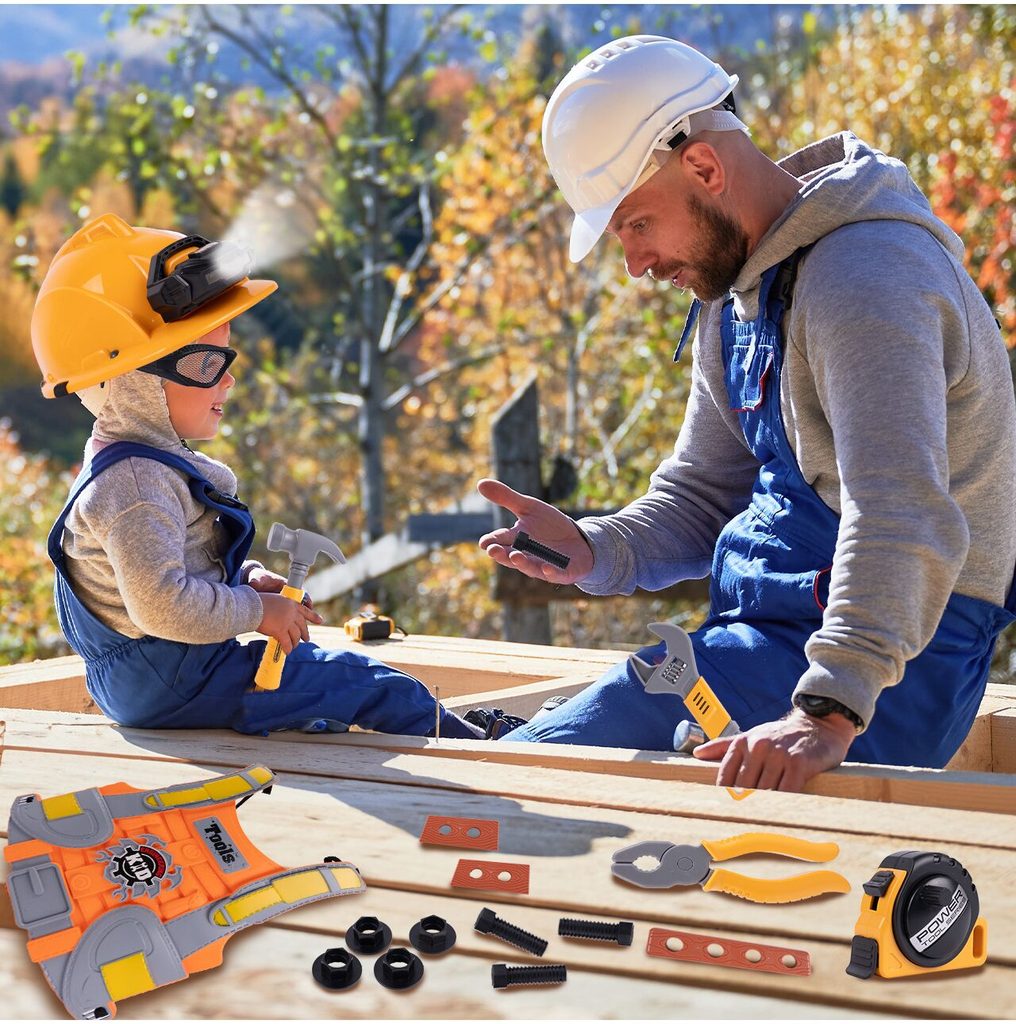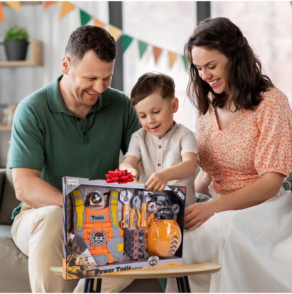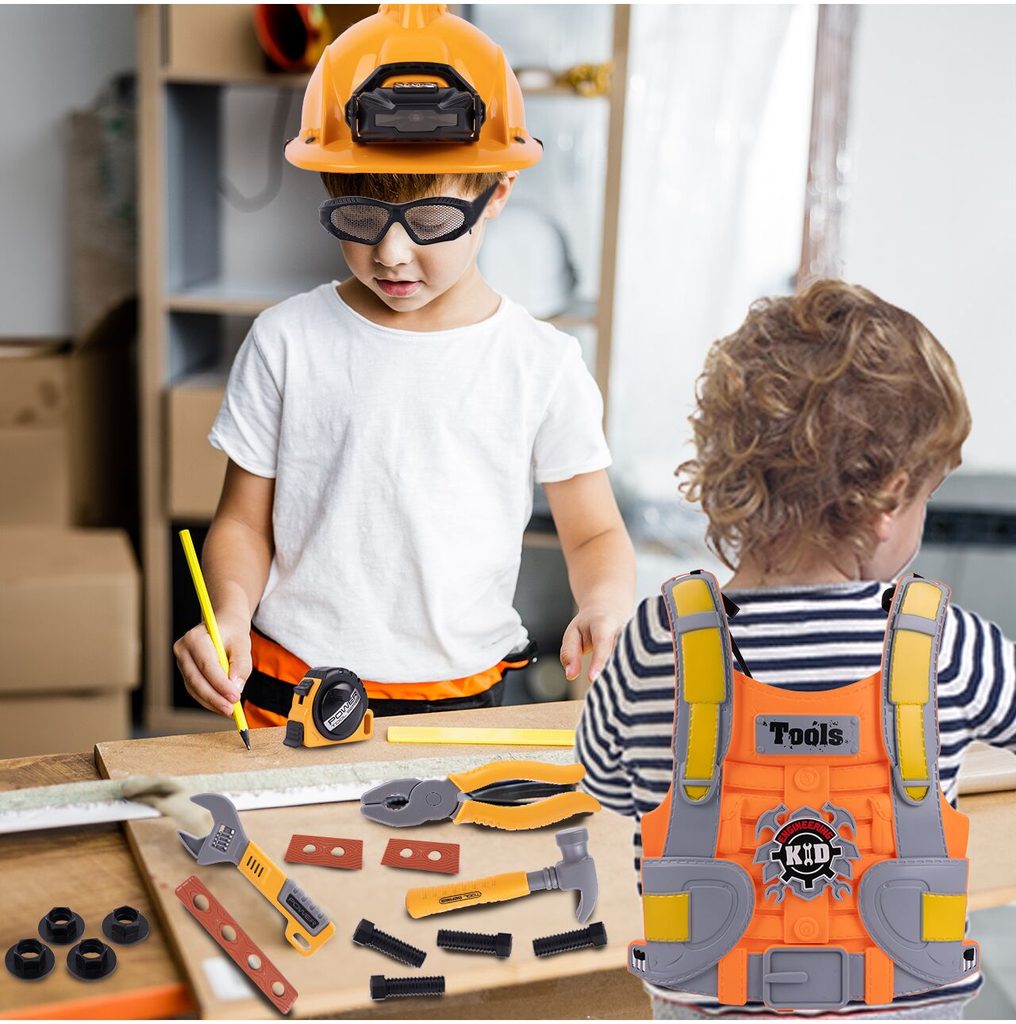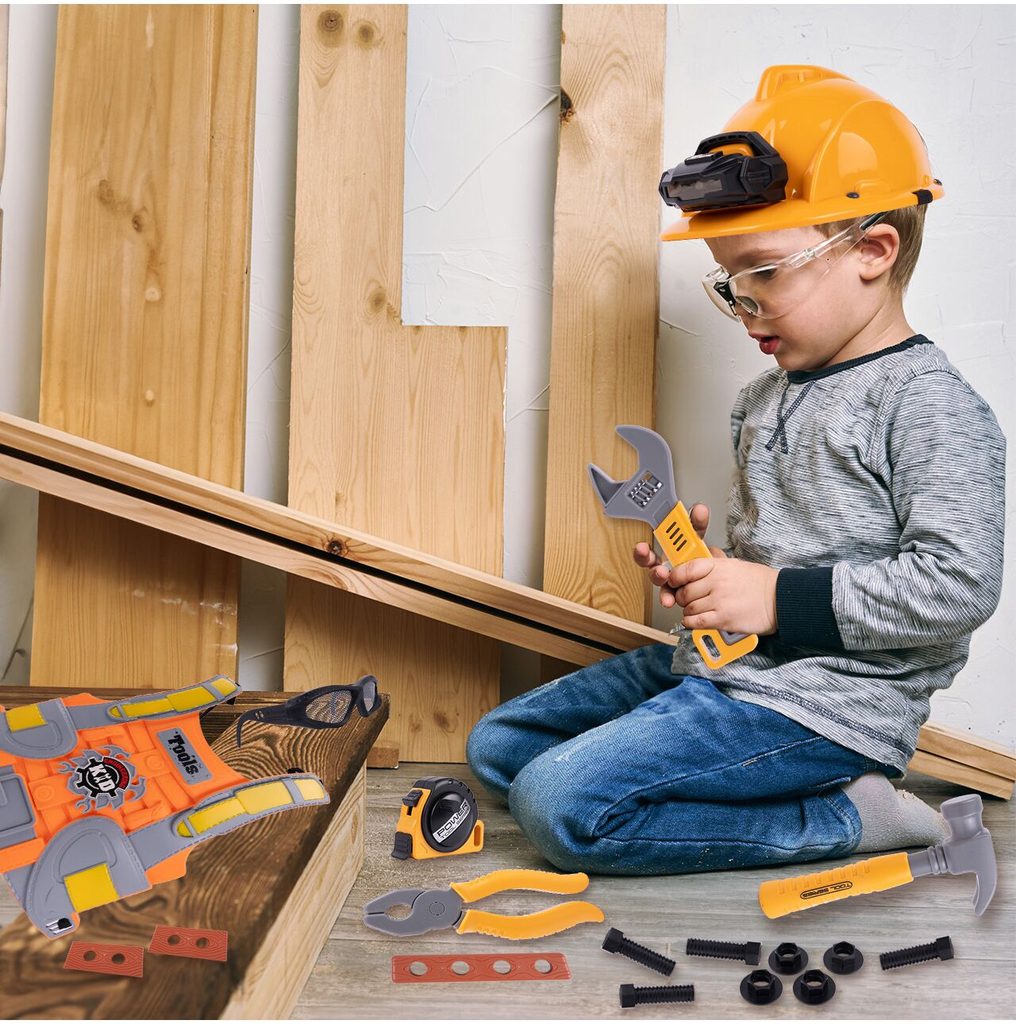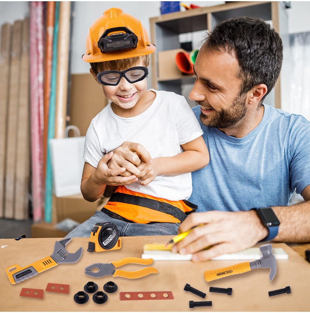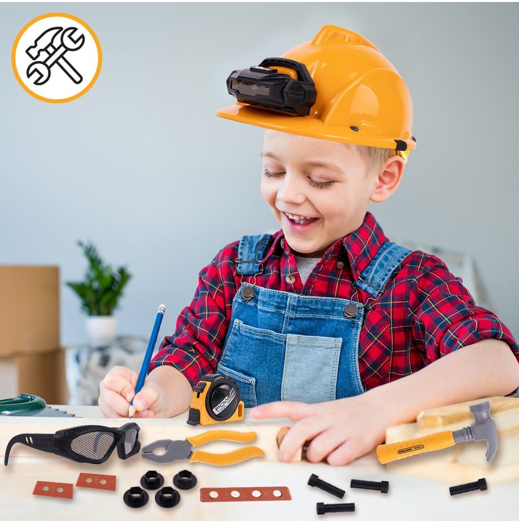 Velká sada plastového nářadí s helmou na baterie, vestou a ochrannými brýlemi je ideální hračkou pro všechny malé kutily. Sada obsahuje mnoho součástí včetně kladívka, francouzského klíče, šroubků, kleští, konstrukčních prvků a dalšího nářadí. V sadě je také helma na baterie, které po zapnutí svítí. Hračka je určena pro děti od 36 měsíců věku.