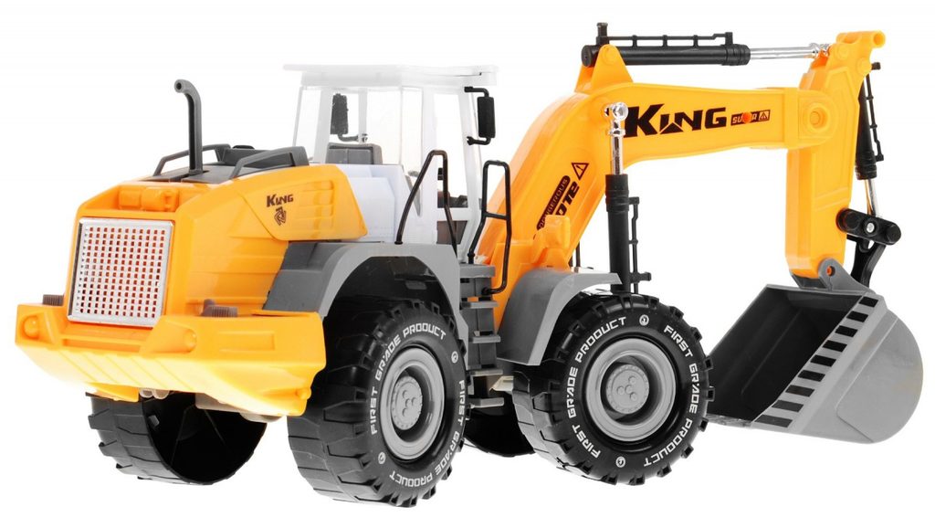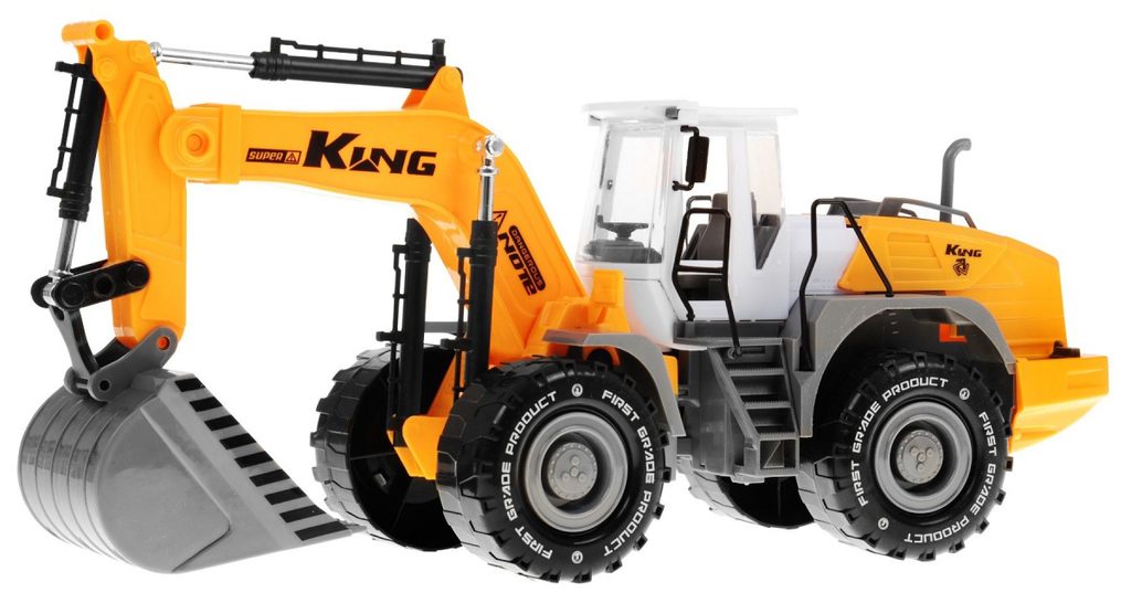 Velký bagr s pohyblivou lžící Super King je ideální hračkou pro rozvoj manuální zručnosti a logického myšlení. Je vybaven pohyblivým ramenem se lžící o délce 27 cm jední dopředu a dozadu a zatáčí. Pod otevíratelnou kapotou je umístěna atrapa motoru. Hračka je určena pro děti od 36 měsíců věku.