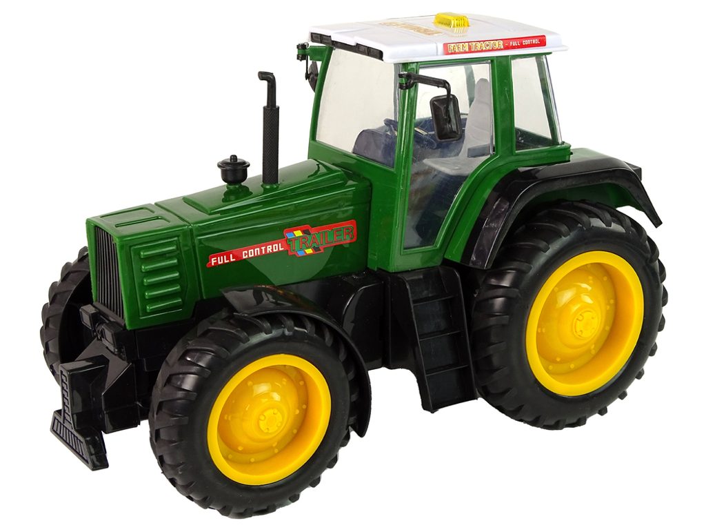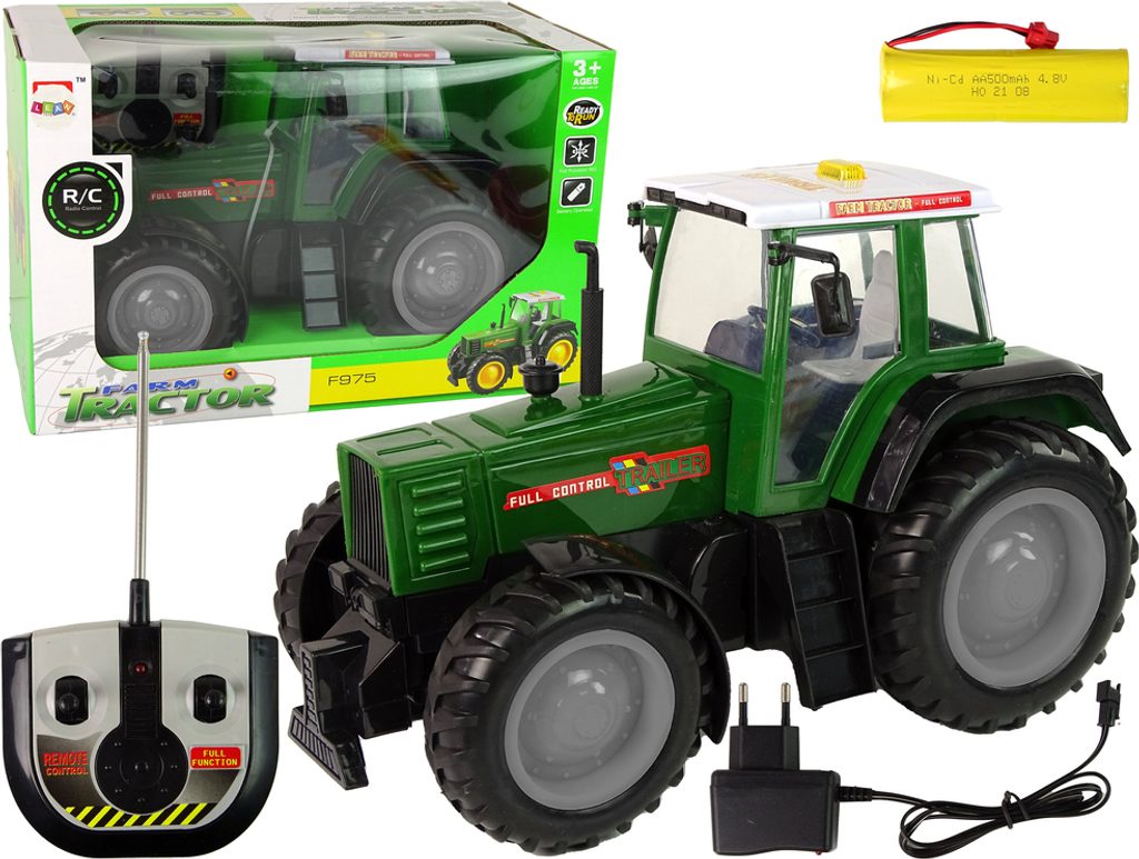 Velký traktor Trailer Tractor s dálkovým ovládáním 2,4G umožnuje jízdu oběma směry a má otáčecí kola doprava a doleva. Je osazený velkými koly. Ovládání je velmi jednoduché pomocí ovladače se 2 páčkami.Traktor má zabudovaný 4,8V 500 mAh akumulátor a součástí je také USB nabíječka. Dálkové ovládání je napájeno bateriemi, které nejsou součástí balení. Traktor je vyroben z plastu a má certifikaci CE.