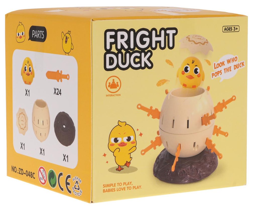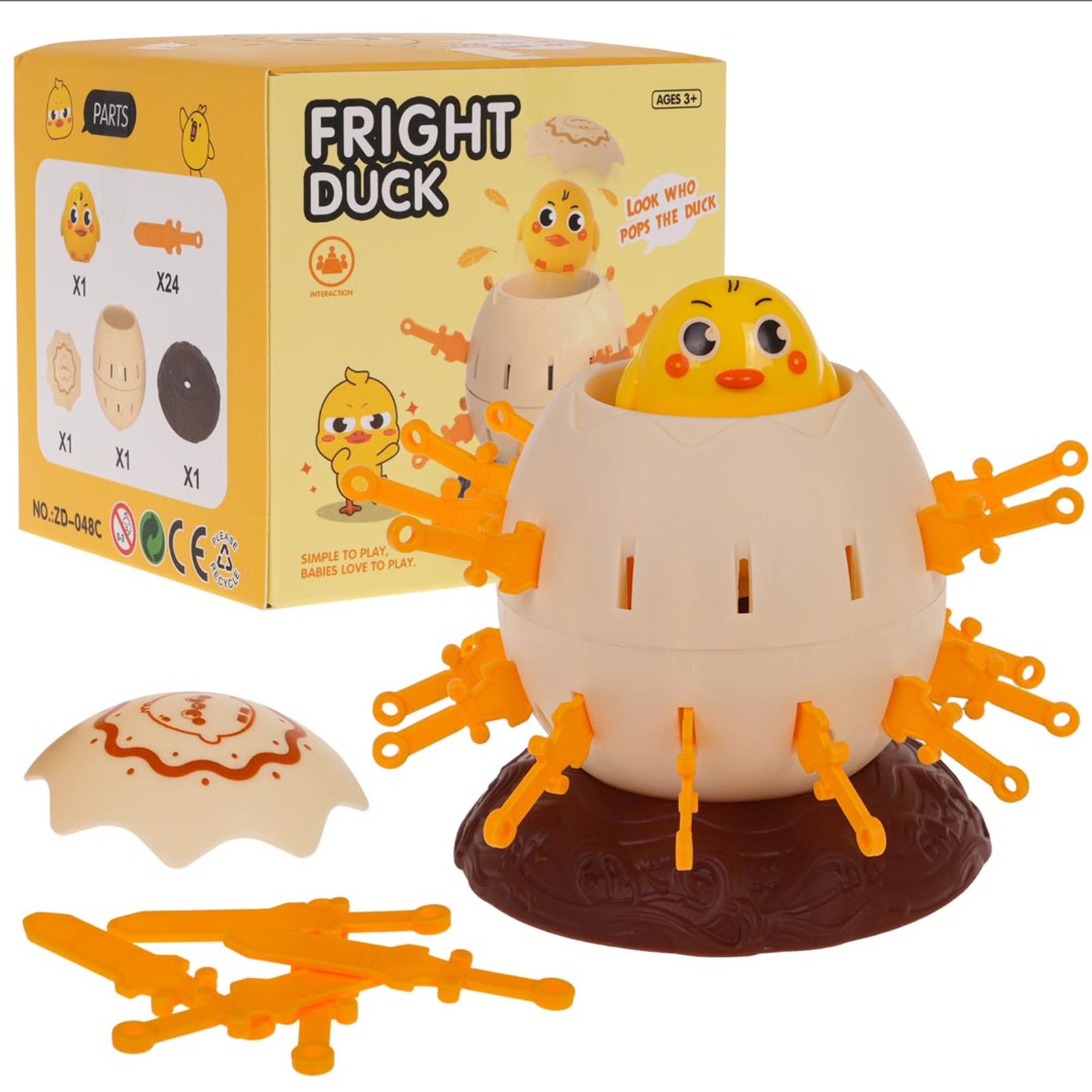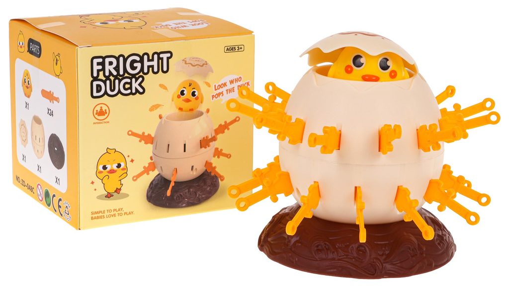 Veselá dětská hra Skákající kachna je určena pro děti a klidně i pro dospělé. Sada obsahuje skořápku s otvory, kachnu a "meče". Tato hra rozvíjí manuální zručnost a procvičuje trpělivost a koncentraci. Princip je v postupném vkládání mečů dovnitř skořápky a to tak aby kachna nevyskočila. Pokud hráč vloží meč nepřesně, kachna vyskočí ven a hráč ztrácí tah. Hračka je vyrobená z plastu a určena pro děti od 3 let.