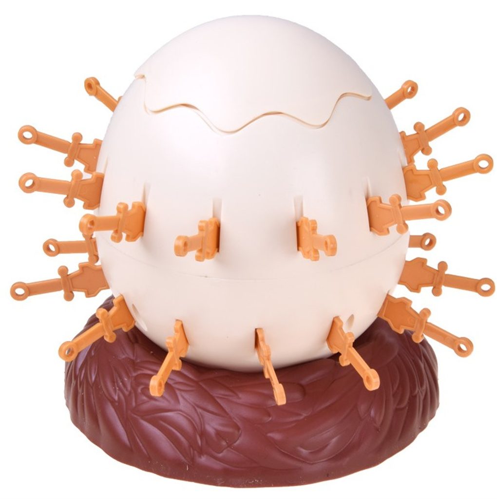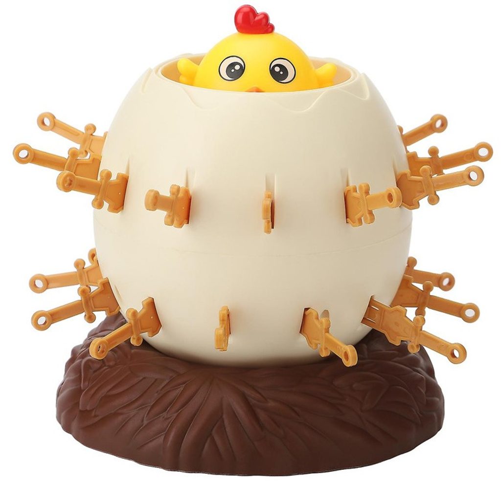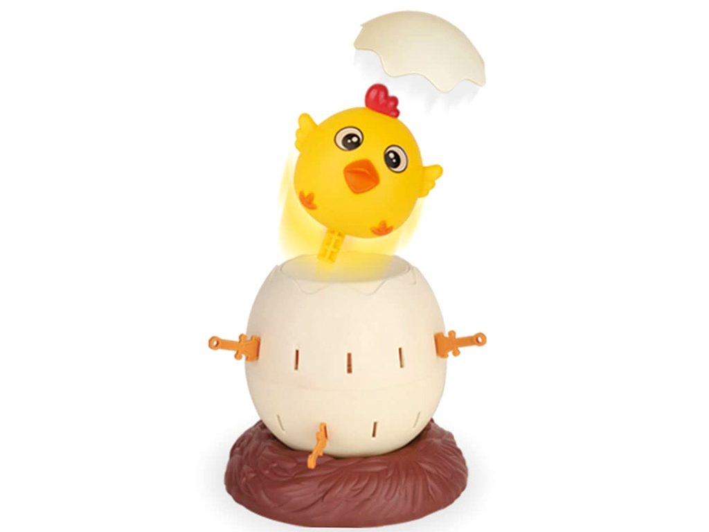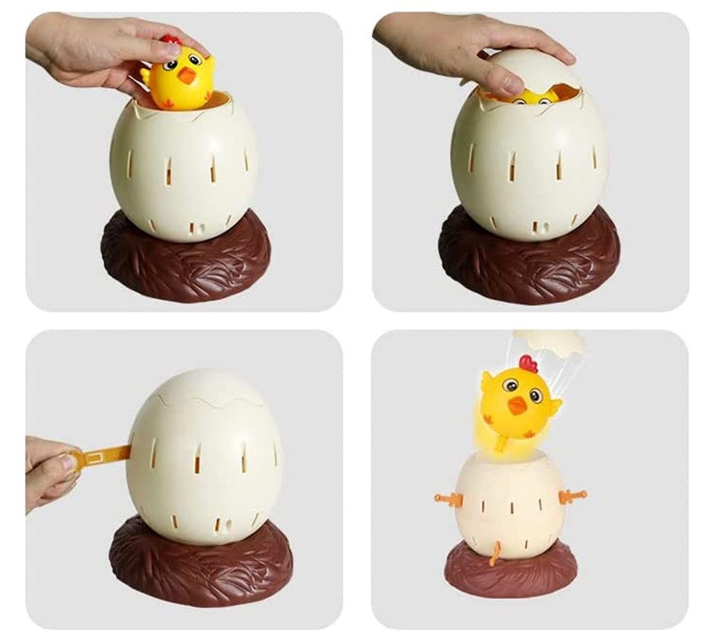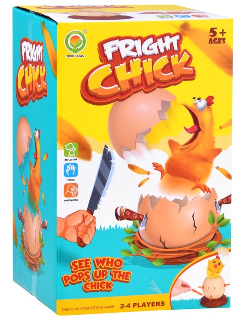 Veselá dětská hra Skákající kuře je určena pro děti a klidně i pro dospělé. Sada obsahuje vejce se skořápkou a otvory, kuře, podstavec ve tvaru hnízda a "meče". Tato hra rozvíjí manuální zručnost a procvičuje trpělivost a koncentraci. Princip je v postupném vkládání mečů dovnitř vejce a to tak aby kuře nevyskočilo. Pokud hráč vloží meč nepřesně, kuře vyskočí ven a hráč ztrácí tah. Hračka je vyrobená z plastu a určena pro děti od 5 let.