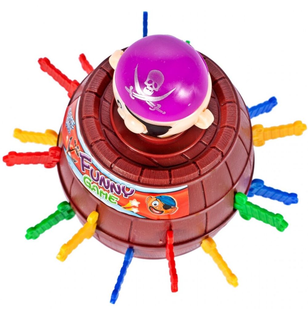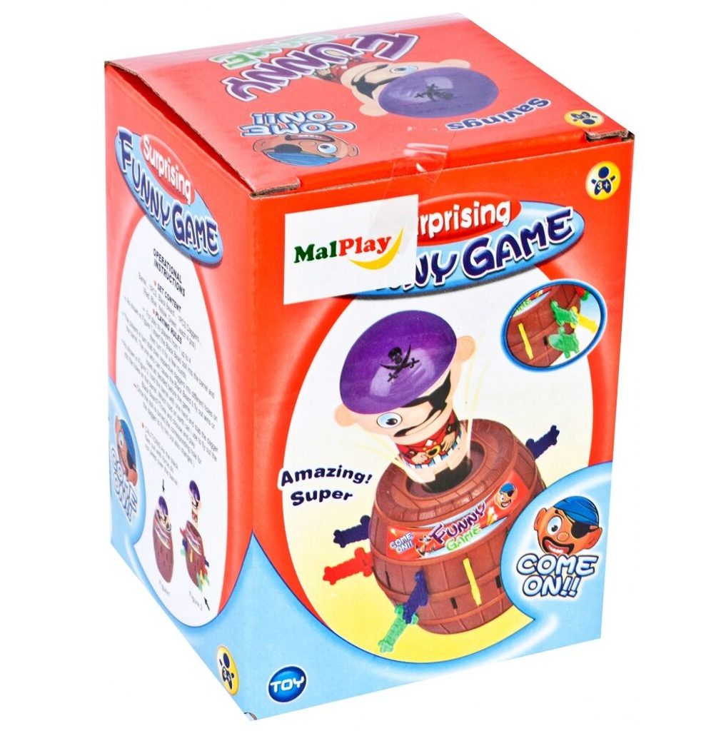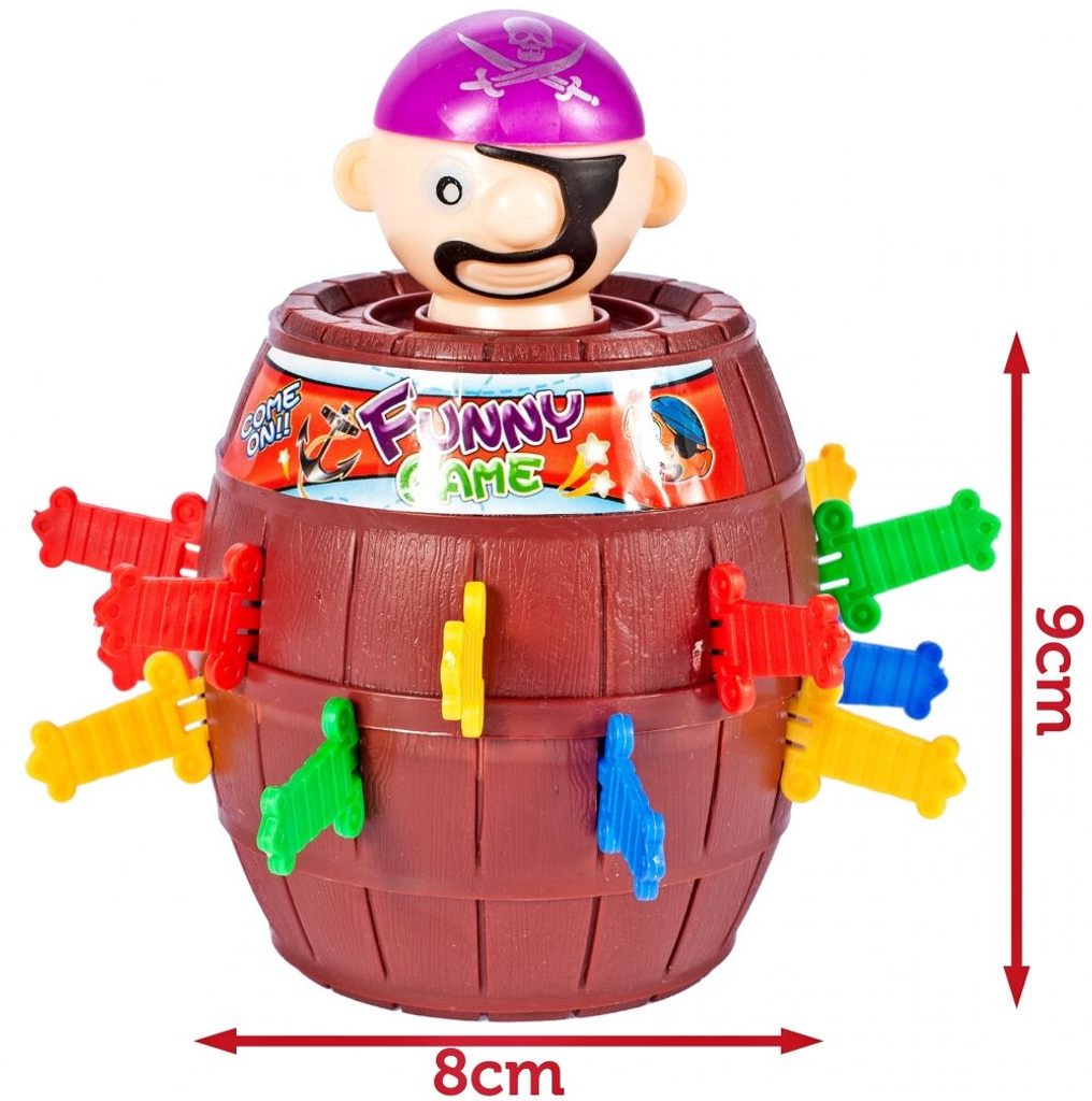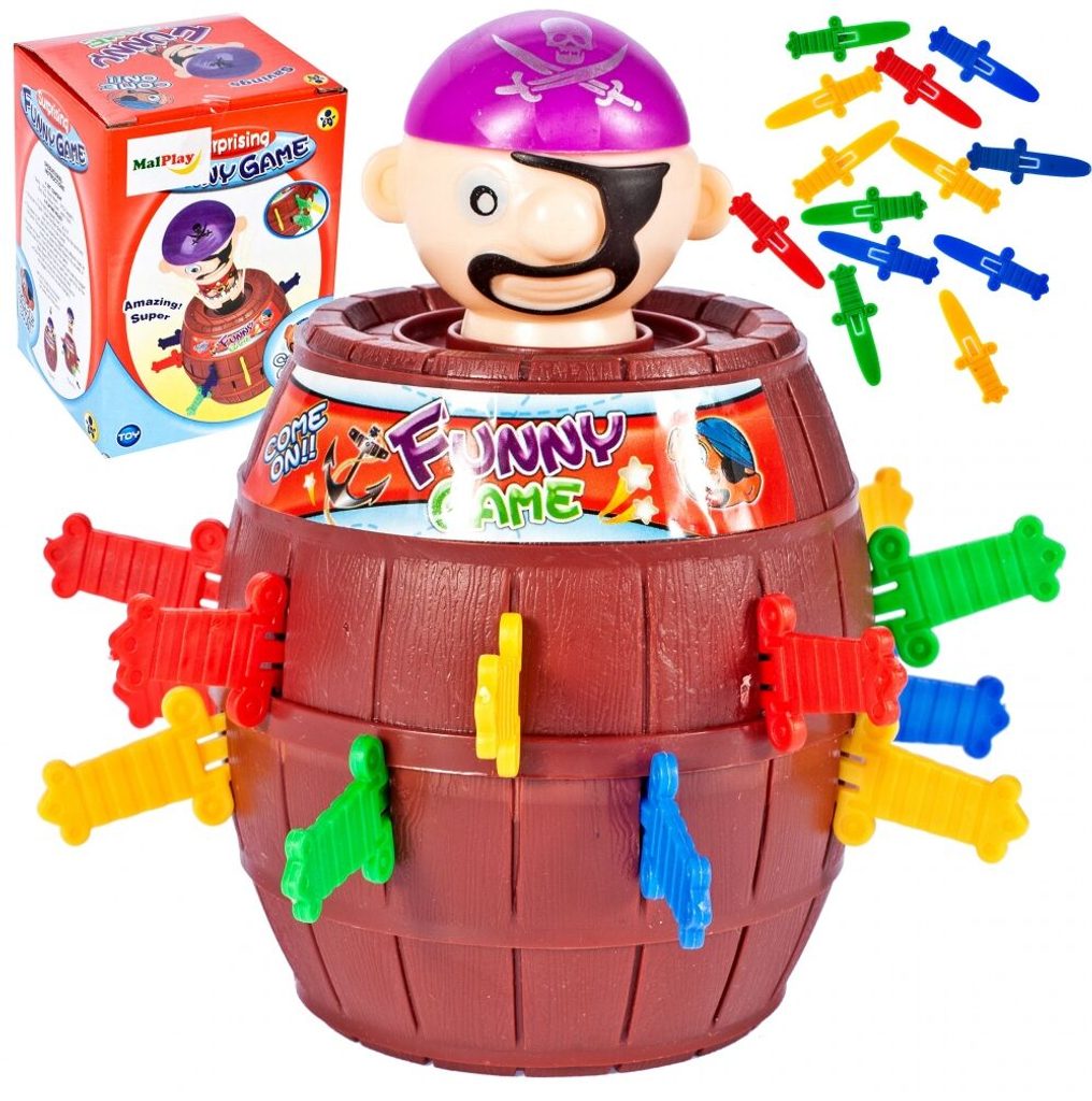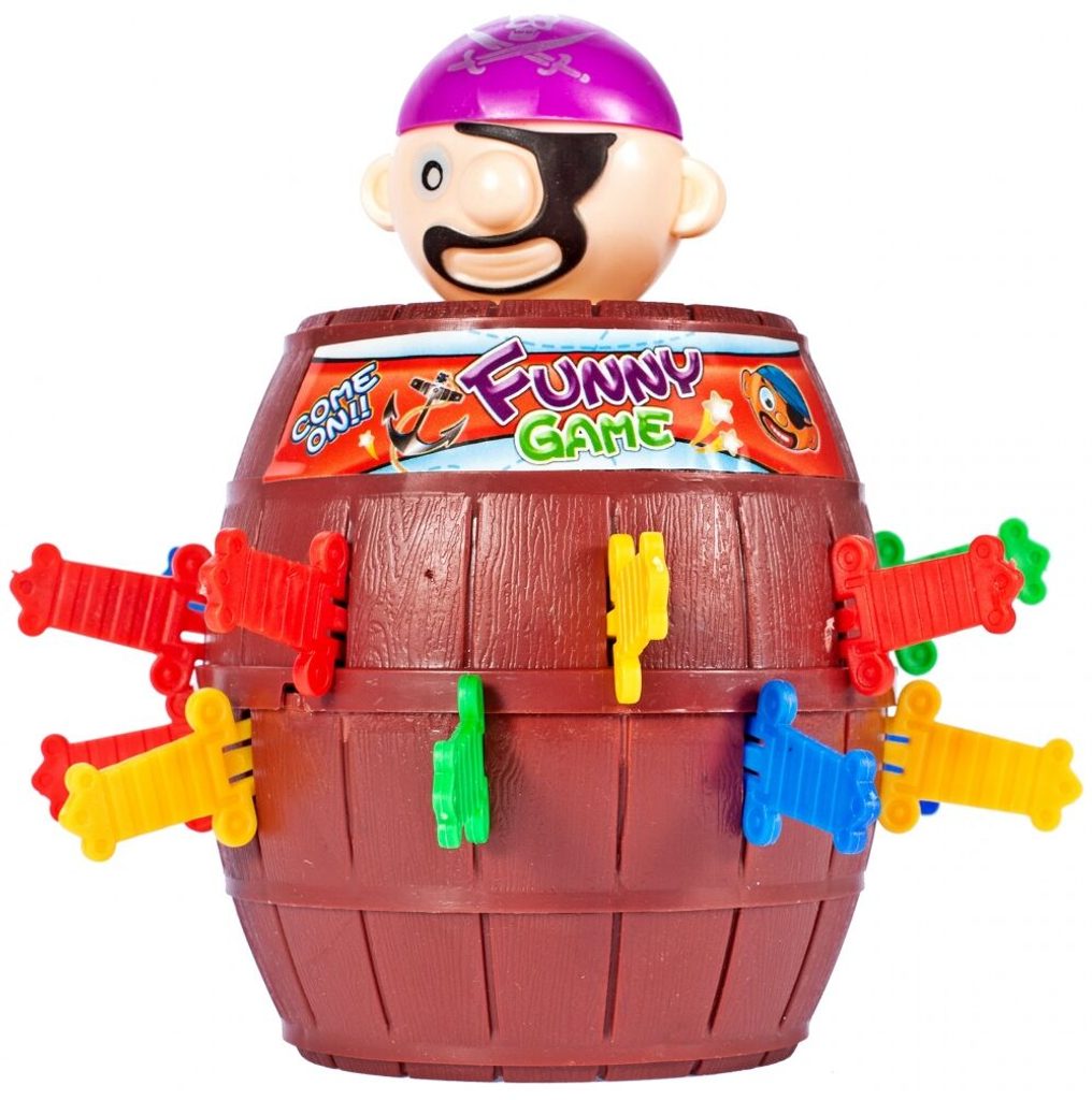 Veselá dětská hra Skákající pirát je určena pro děti a klidně i pro dospělé. Sada sud s otvory, piráta a "meče". Tato hra rozvíjí manuální zručnost a procvičuje trpělivost a koncentraci. Princip je v postupném vkládání mečů dovnitř sudu a to tak aby pirát nevyskočil. Pokud hráč vloží meč nepřesně, pirát vyskočí ven a hráč ztrácí tah. Hračka je vyrobená z plastu a určena pro děti od 3 let.