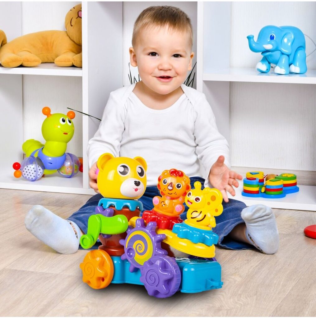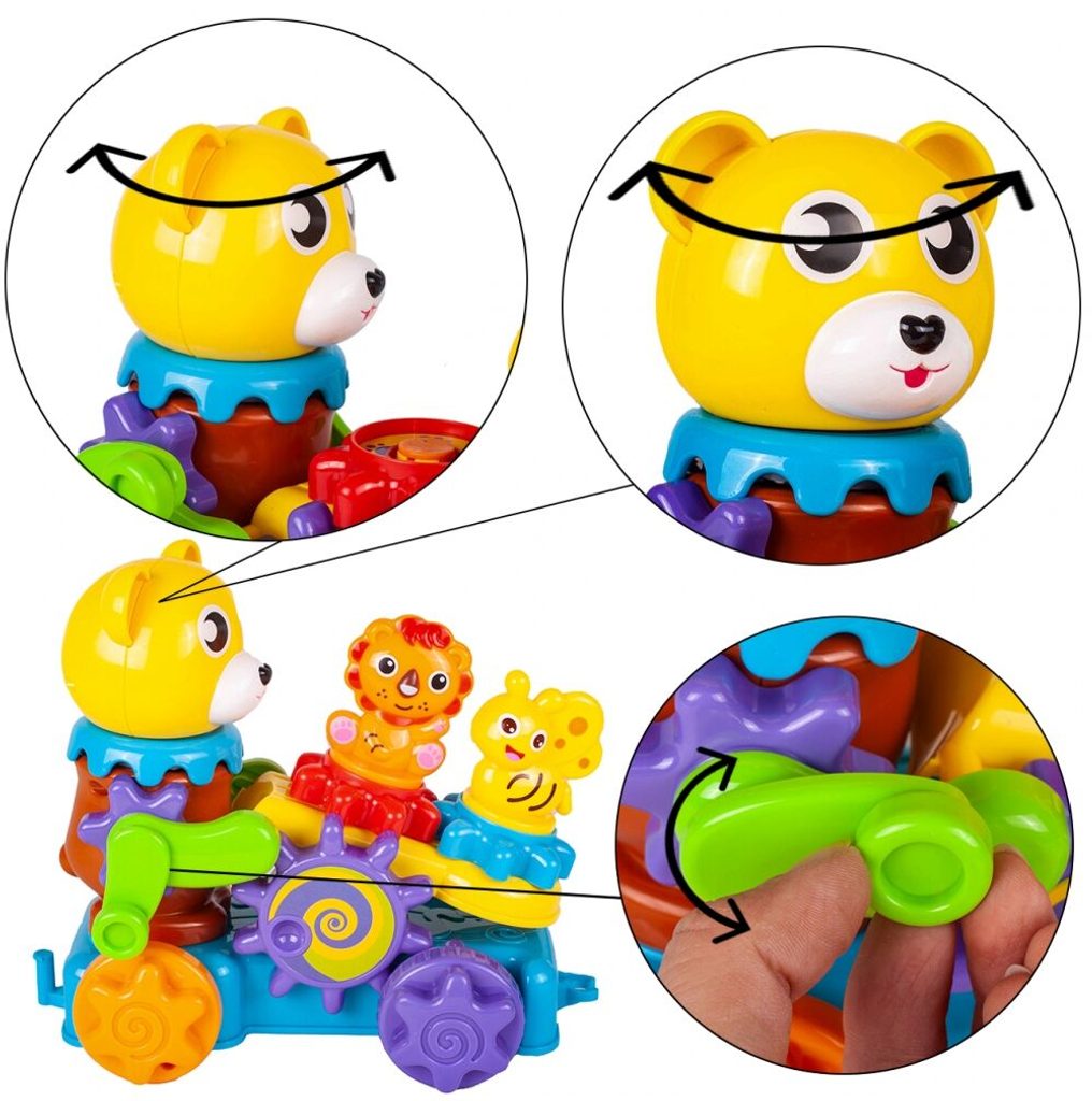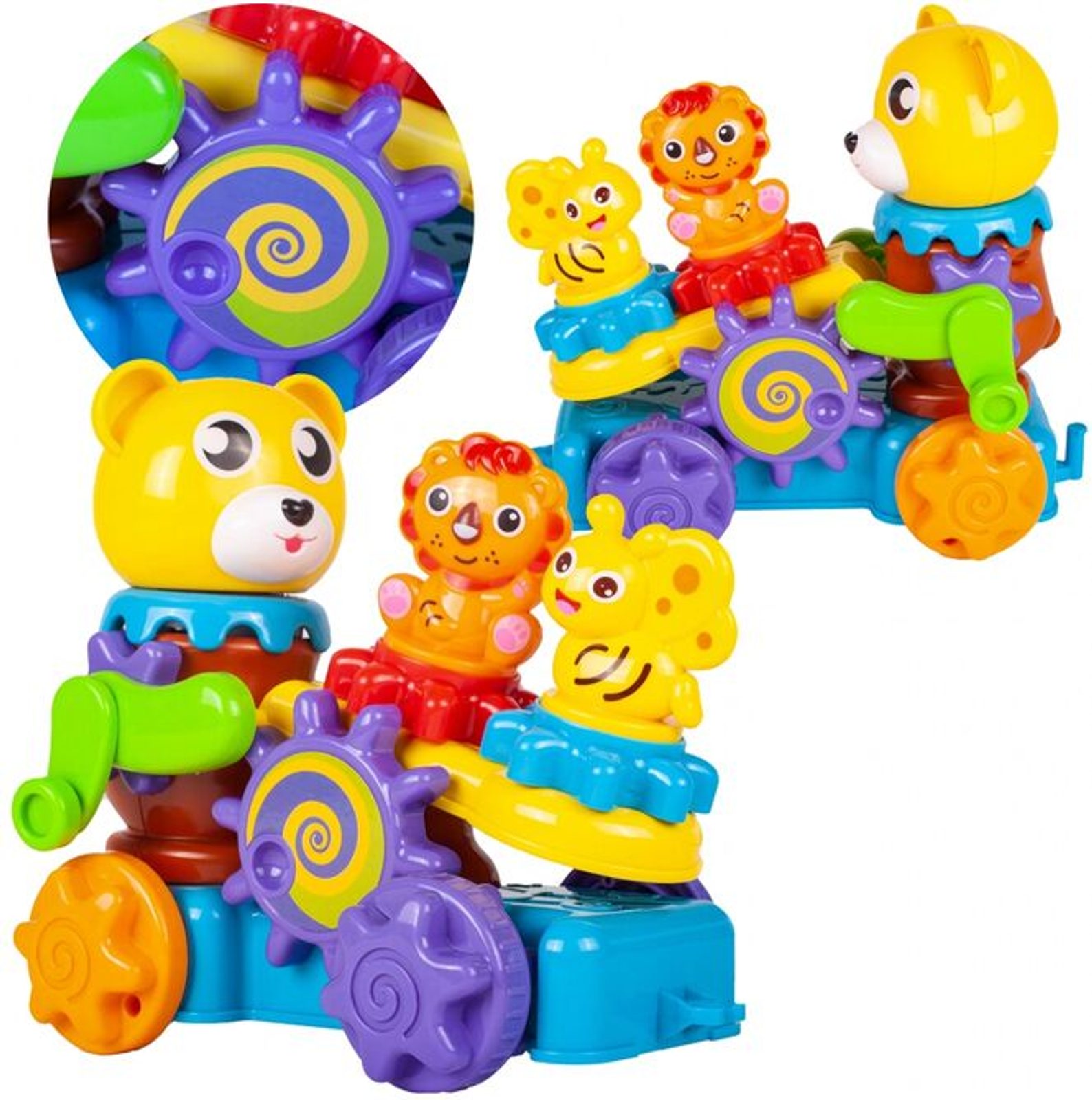 Veselé autíčko s ozubenými kolečky Bear Car je ideální hračkou pro ty nejmenší děti kdy jim pomůže rozvíjet logické myšlení, rozpoznávání barev a tvarů a také motorickou koordinaci. Pohyblivé části, hřídele a ozubená kola jsou speciálně navržené tak, aby podporovaly rozvoj manuálních dovedností malých dětí. Součástí sady je auto s medvídkem a 2 figurky - lvíček a včelka. Hračka je určena pro děti od 36 měsíců věku.