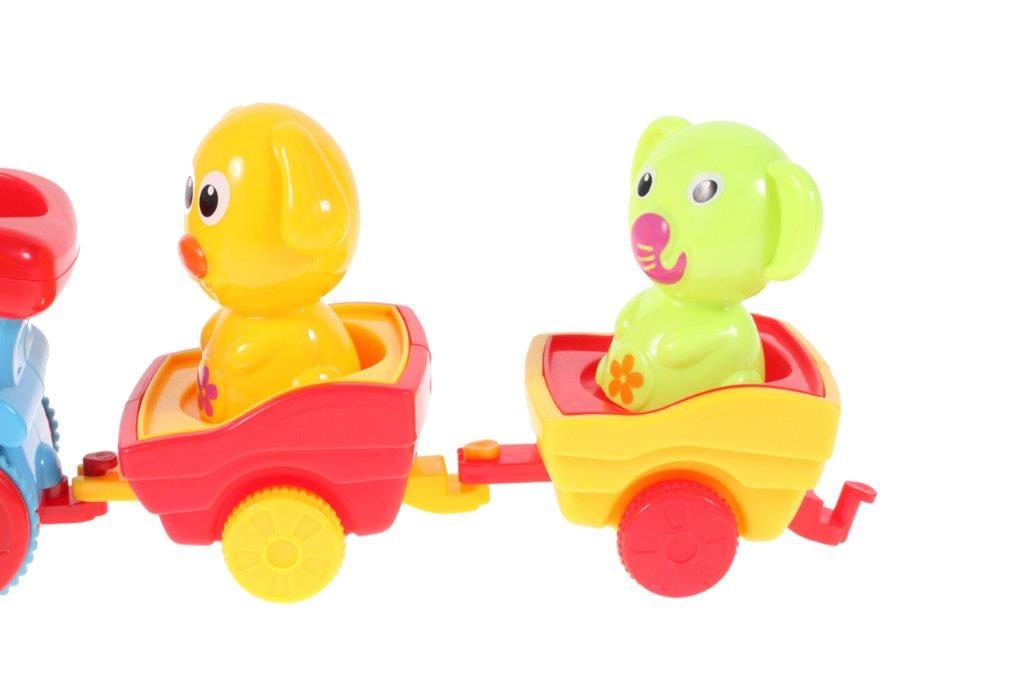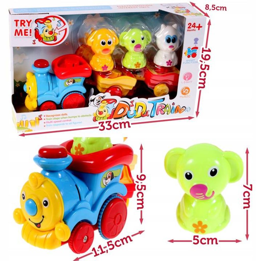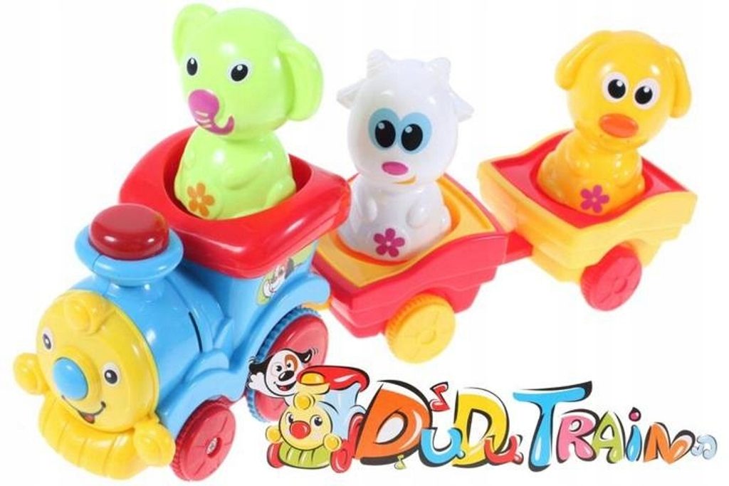 Interaktivní dětský vláček pro nejmenší Mini Dudu Train je ideální hračkou pro ty nejmenší děti kdy jim pomůže rozvíjet logické myšlení, rozpoznávání barev a tvarů, manuální dovednosti a motorickou koordinaci. Součástí vláčku je lokomotiva s blikajícím komínkem a zvukem, tři barevná zvířátka, které lze umístit buď do vagónků nebo do lokomotivy. Během jízdy se zvířátka otáčejí. Hračka je určena pro děti od 24 měsíců věku.