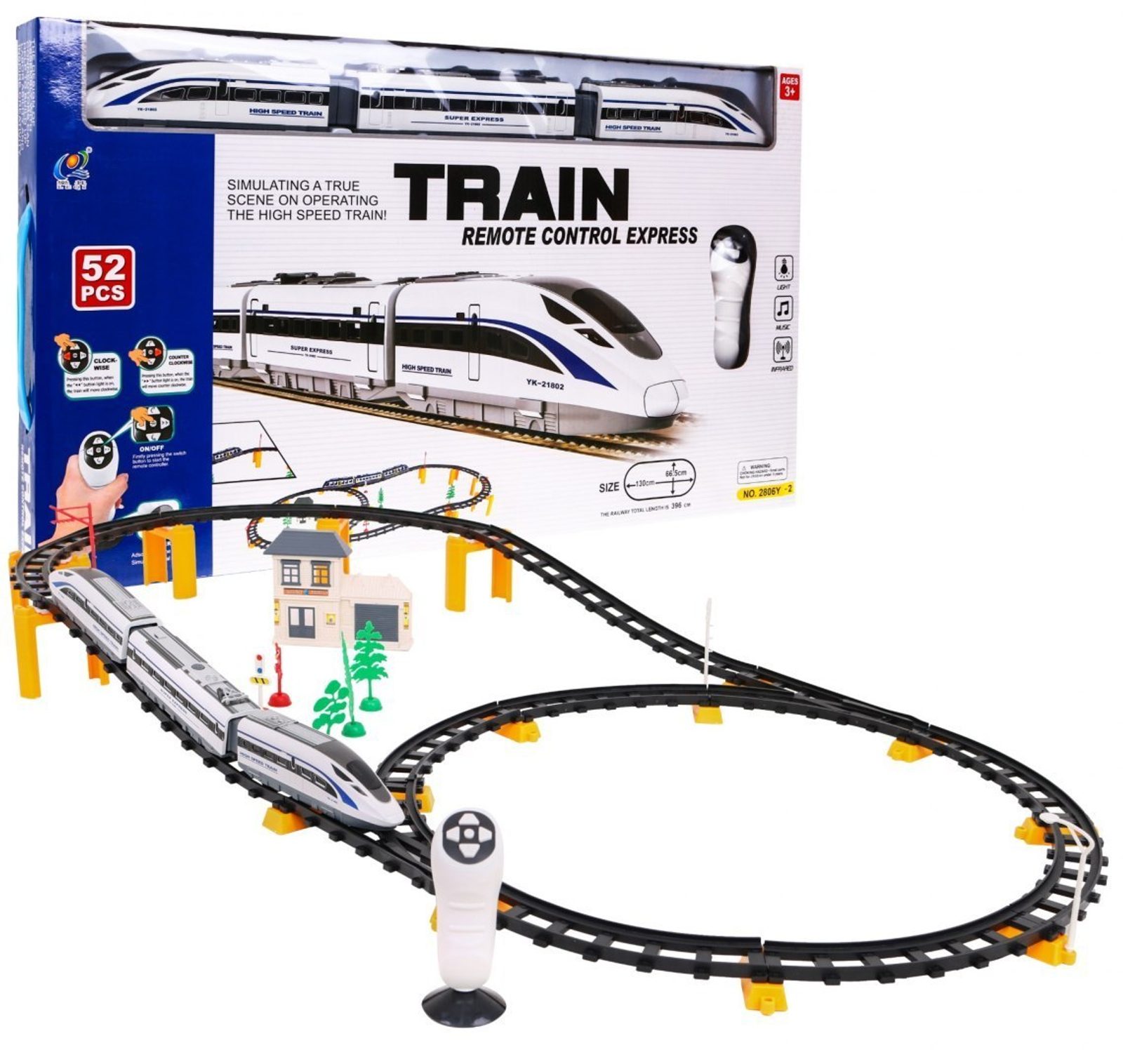 Vláčkodráha s 52 elementy a dálkovým ovládáním Express Train učí dětí představivost a podporuje kreativitu. Vláčkodráha je kompletně vybavená, naleznete zde 2 moderní lokomotivy, středový vagón, budovu nádraží, koleje, značky, stromečky a další. Vláček jezdí dopředu a dozadu, je vybavený světelnými efekty a zvukem jízdy vlaku. Velmi jednoduché ovládání pomocí dálkového ovladače. Vše je vyrobeno z plastu bez ostrých hran. Hračka je určena pro děti od 36 měsíců věku.