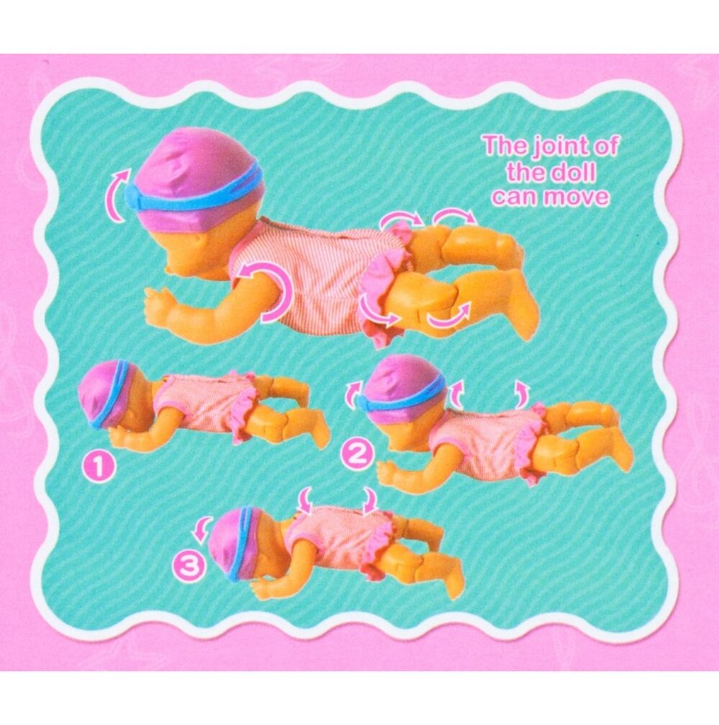 Voděodolná interaktivní panenka Swimming Doll se rychle stane kamarádem při plavání či koupání. Panenka pomáhá dětem překonat strach z vody a probudí v nich zájem o koupání a plavání. Panenka má celkem 5 pohyblivých částí – ruce, nohy a hlavu. Realisticky tak napodobuje plavání. Umí plavat břichem dolů a také na zádech. Panenka je oblečena v růžových plavkách s proužkem a na hlavičce má plaveckou čepici s plaveckými brýlemi. Hračka je určena pro děti od 36 měsíců věku.