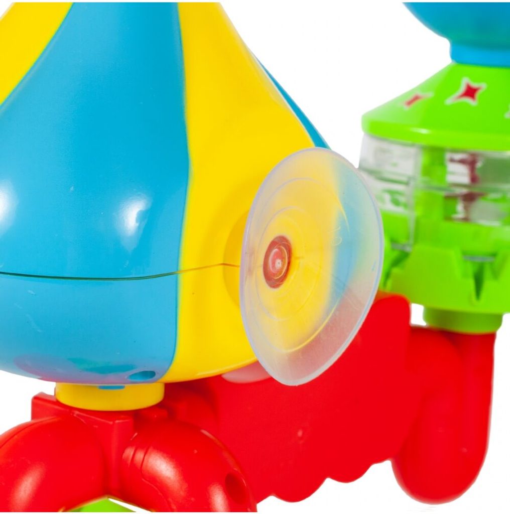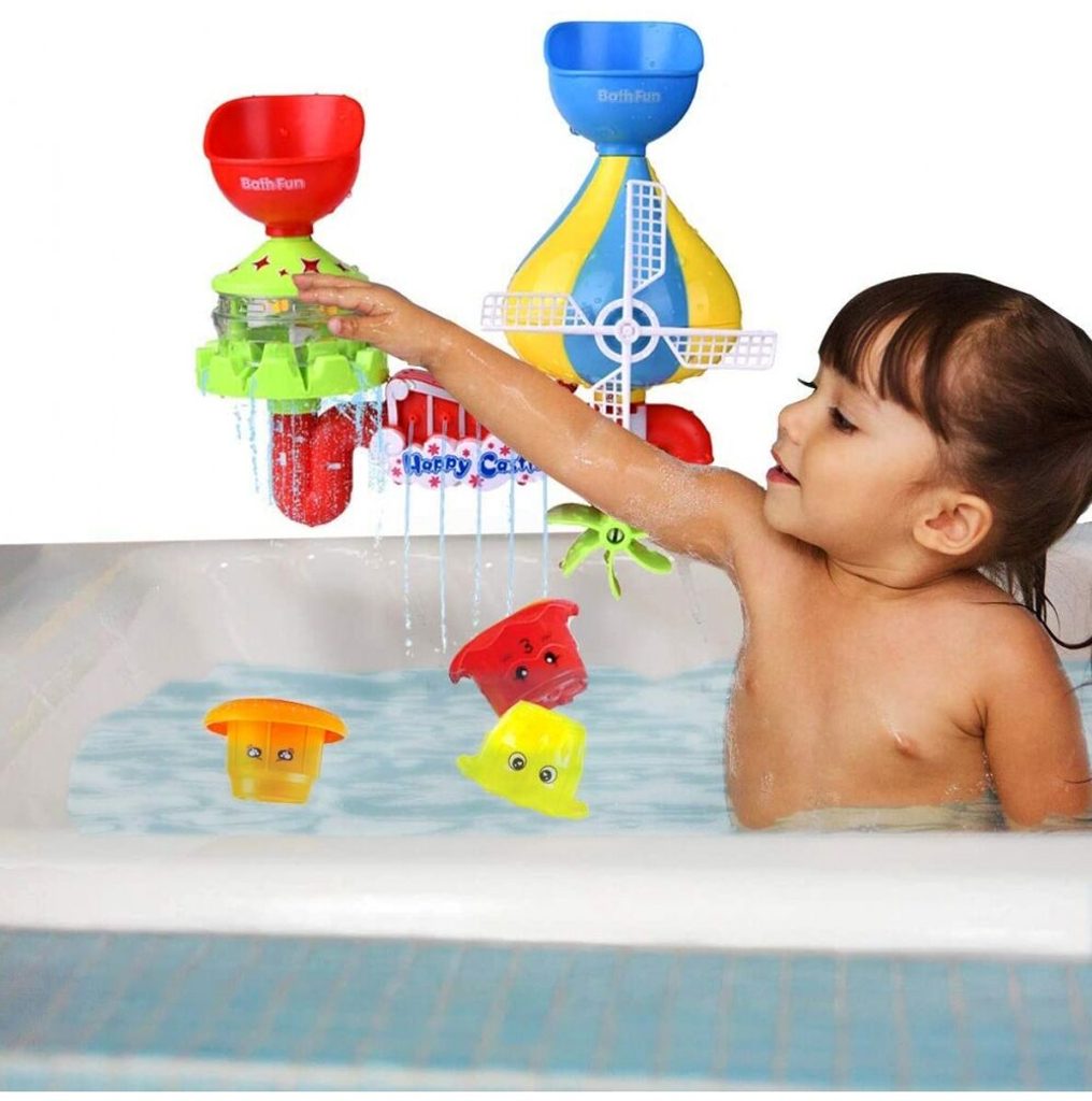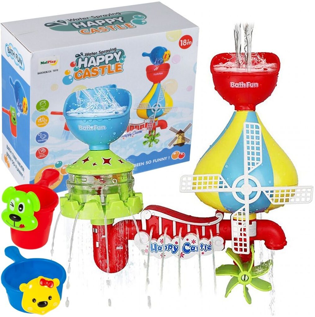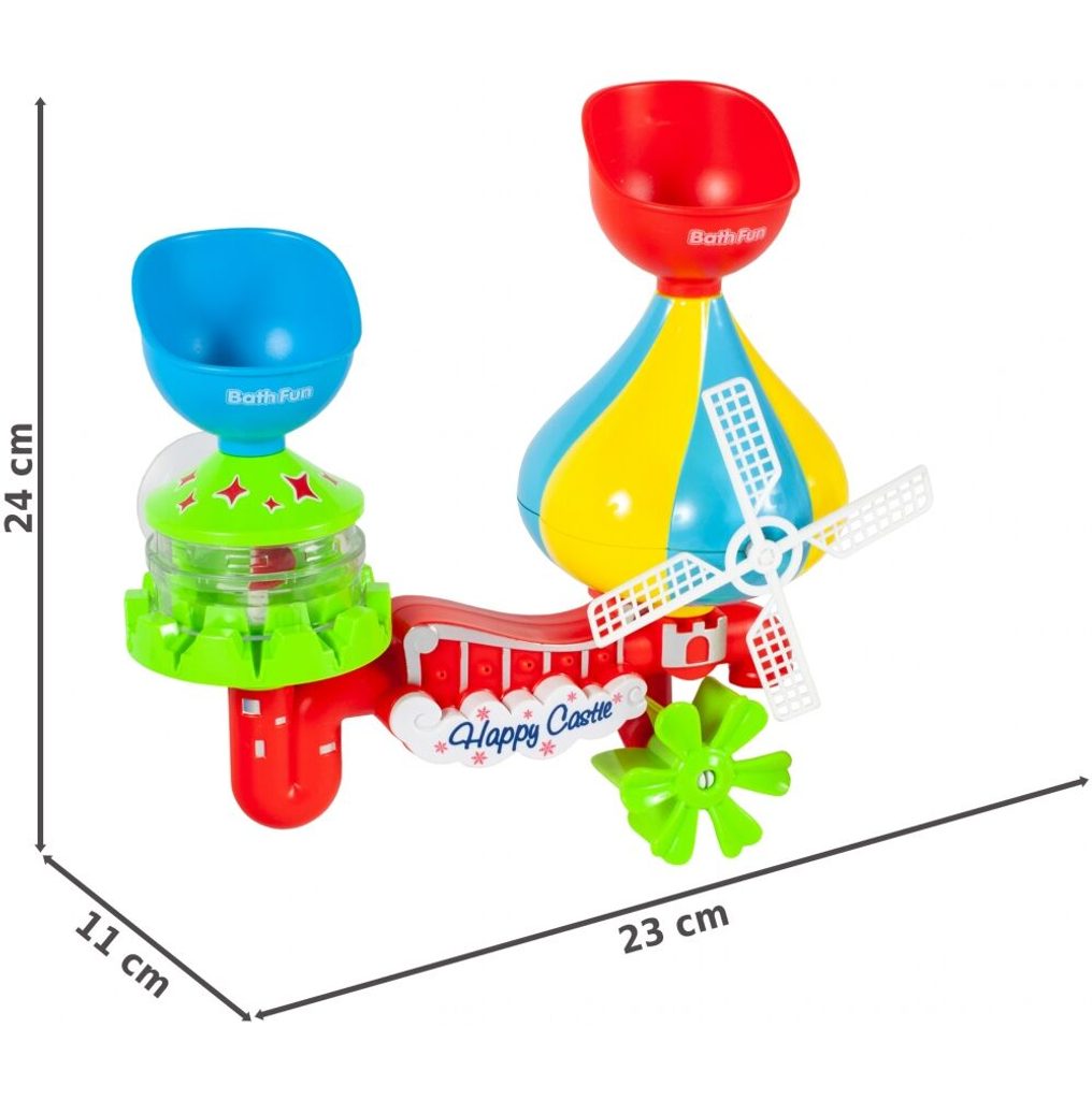 Dětská hračka Happy Castle je perfektní hračkou do vany. Je vybavena přísavkami pro snadné uchycení. Po nalití vody začne voda protékat hračkou, roztočí kolovrátek uprostřed hračky za současného zvuku tekoucí vody a zároveň vytvoří také fontánu, kdy voda vytéká z otvorů ve spojovací trubici. Součástí sady jsou také 2 nalévací nádobky s ouškem. Hračka je vyrobená z plastu a určena pro děti od 18 měsíců věku.