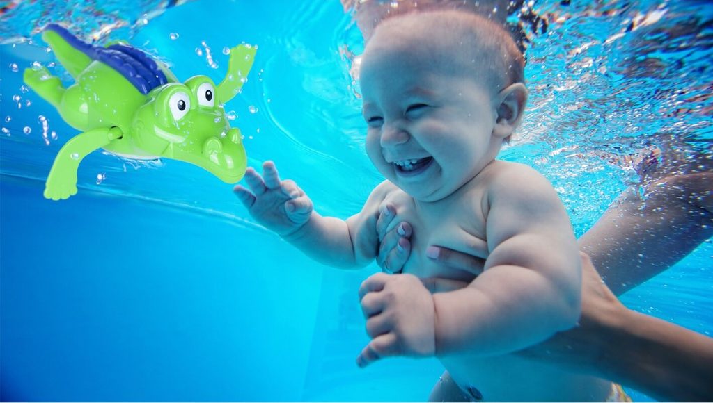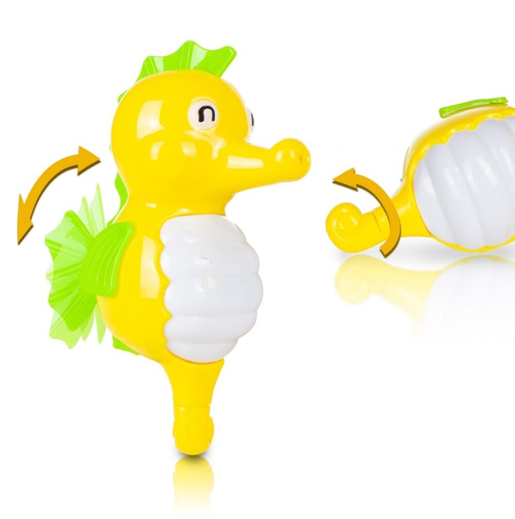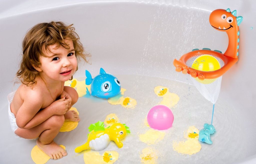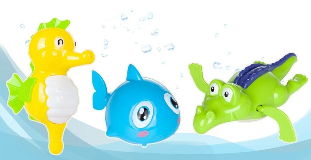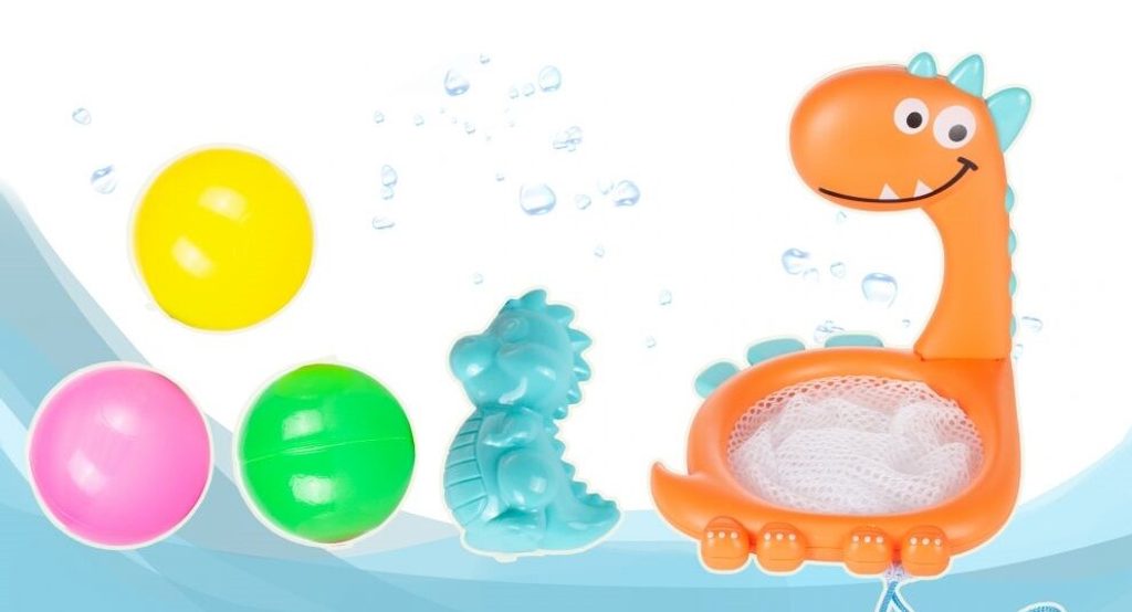 Sada vodních hraček Bath Toys je ideální hračkou pro ty nejmenší děti pro překonání prvotního strachu z vody. Sada je vhodná do koupelny i do dětských bazénků. Skládá se ze 4 zvířátek, rybky, krokodýla, mořského koníka a dinosaura. Ten je ukončený síťkou do, které se mohou vhazovat tři přiložené barevné míčky. Zvířátka mají také pohyblivé elementy. Hračka je určena pro děti od 36 měsíců věku.