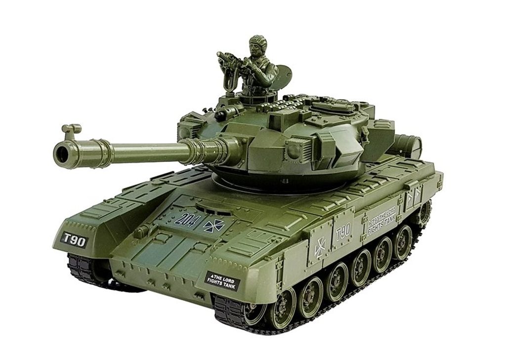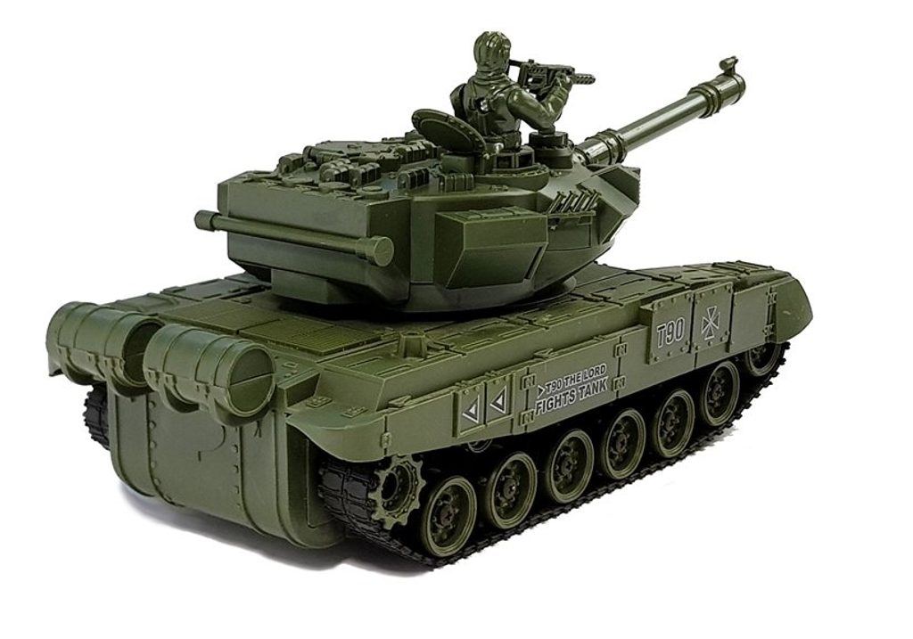 Vojenský tank Russian T90 na dálkové ovládání s dálkovým ovladáním 27Mhz umožnuje jízdu dopředu a dozadu, zatáčí doprava a doleva. Je osazený pásy a během jízdy vydává zvukové a světelné efekty. Součástí balení je akumulátor, USB nabíječka a dálkový ovladač. Dálkové ovládání je napájeno bateriemi, které nejsou součástí balení. Tan je vyroben z odolného plastu a má certifikaci CE.