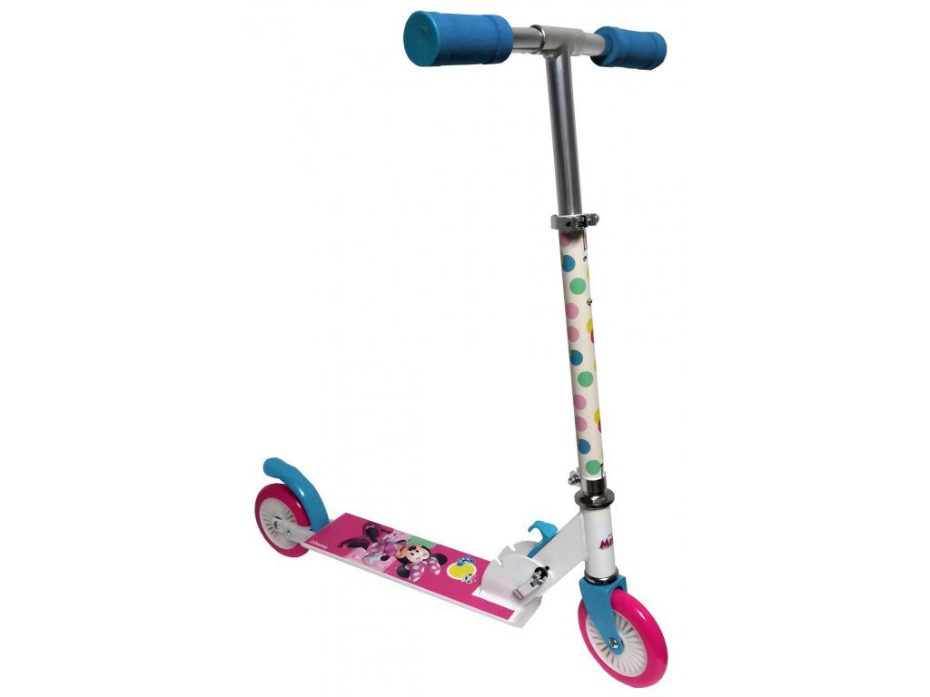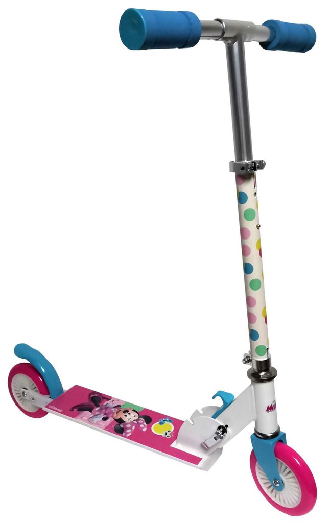 Dětská koloběžka Volare Minnie Mouse se stabilní hliníkovou konstrukcí. Konce řídítek jsou vybaveny protiskluzovými úchyty. Nášlapná plocha je zdobena obrázky. Výšku řídítek lze nastavit. Koloběžka je určena pro děti od 2 do 6 let věku