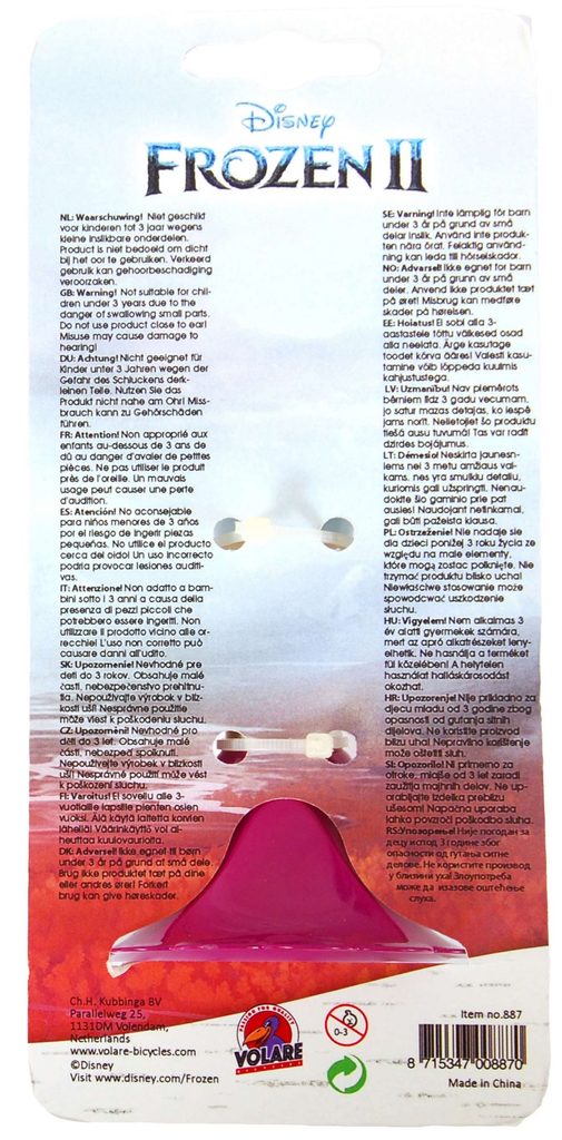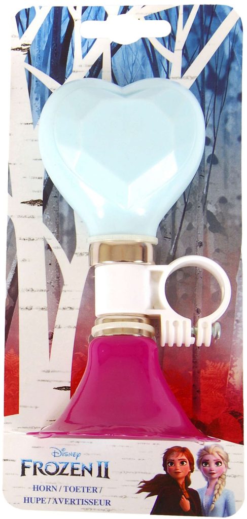Klakson na dětské kolo Frozen II je perfektním doplňkem pro každé dětské kolo. Jednoduše se nasadí na řídítka a při jízdě tak dítě upoutá a upozorní každého na to, že se blíží malý cyklista.