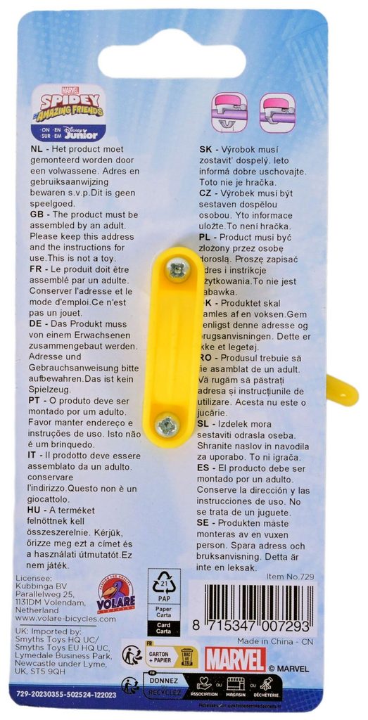 Dětský zvoneček Spidey je perfektním doplněk pro každé dětské kolo. Má průměr 5 cm, na horní straně má oblíbený obrázek a jeho zvonění upoutá a upozorní každého na to, že se blíží malý cyklista.
