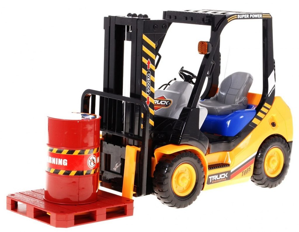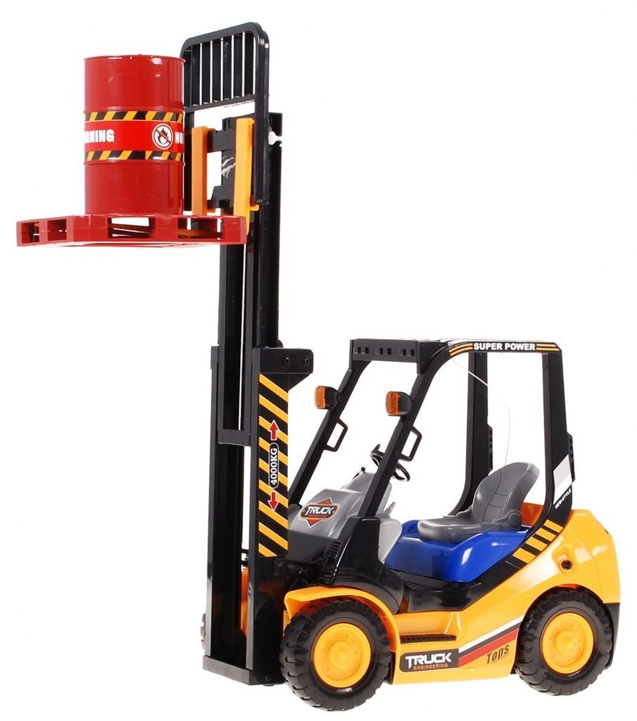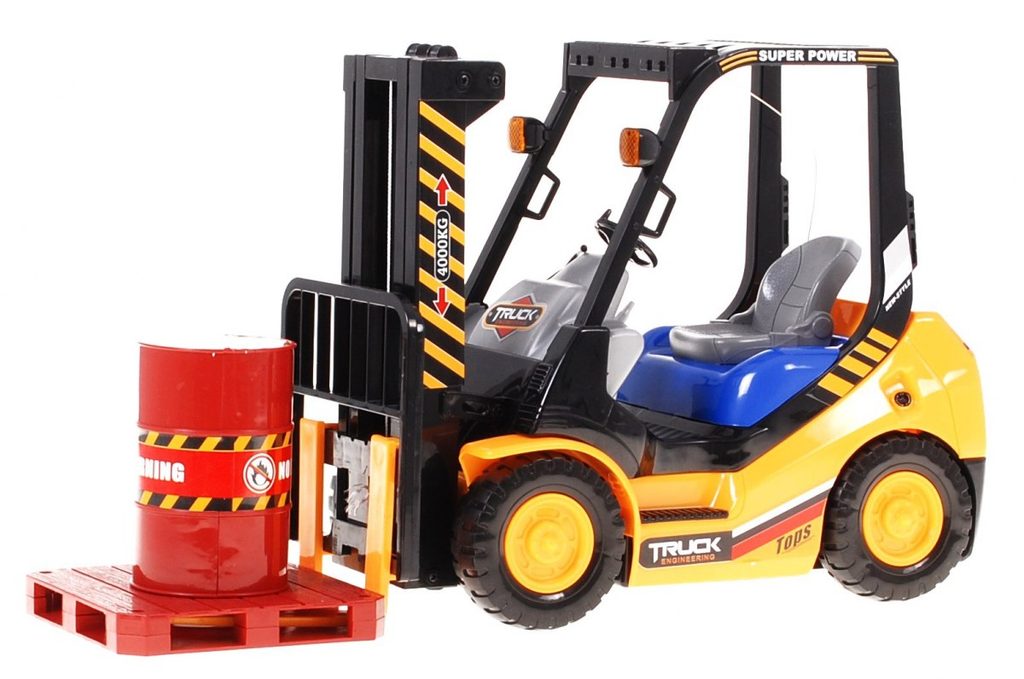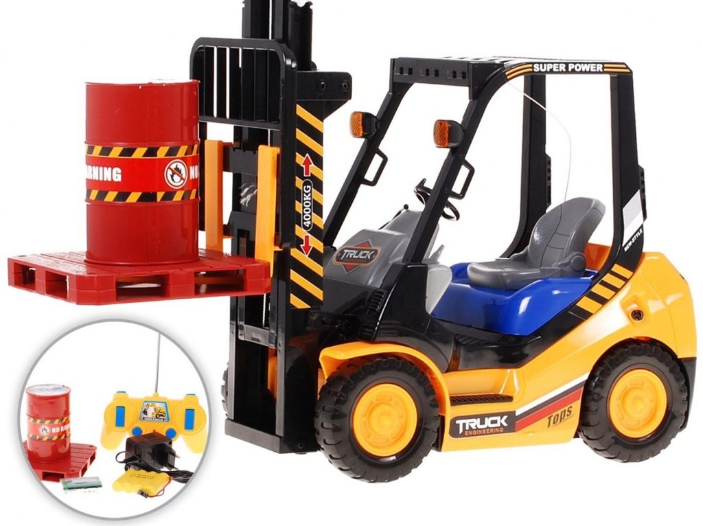 Vysokozdvižný vozík na dálkové ovládání s dálkovým ovládáním 2,4G umožnuje jízdu dopředu a dozadu, má otáčecí kola doprava a doleva a pohyblivé přední vidle, které lze zvedat nahoru a dolů. Jízda je doprovázena světelnými efekty. Ovládání je velmi jednoduché pomocí ovladače se 4 tlačítky. Součástí balení je akumulátor a USB nabíječka, imitace palety a barelu. Dálkové ovládání je napájeno bateriemi, které nejsou součástí balení. Je vyroben z plastu a má certifikaci CE.