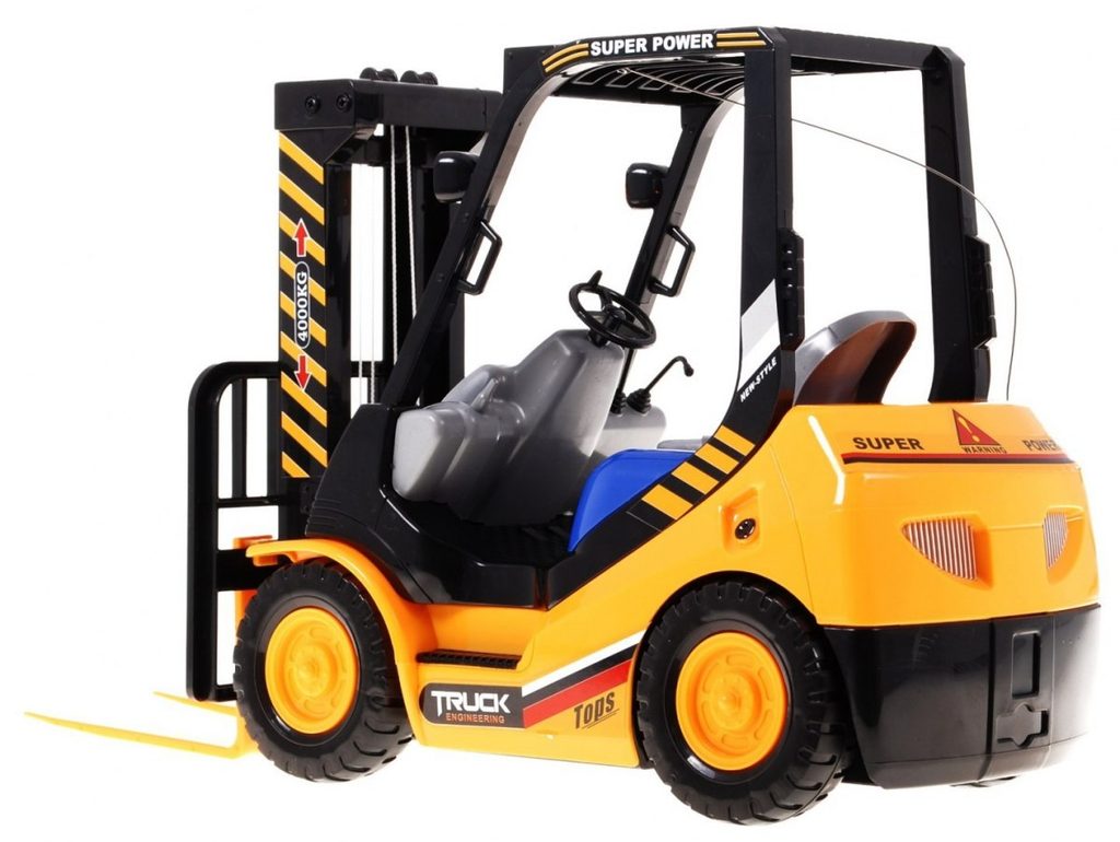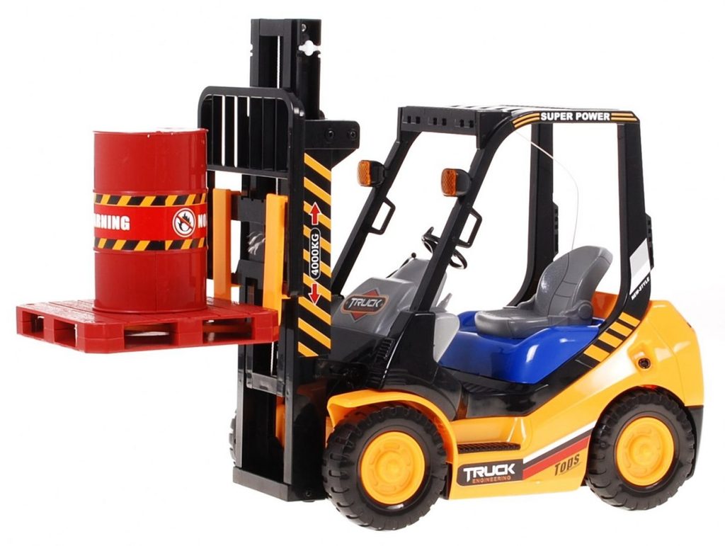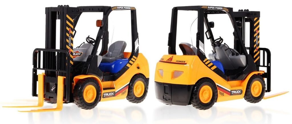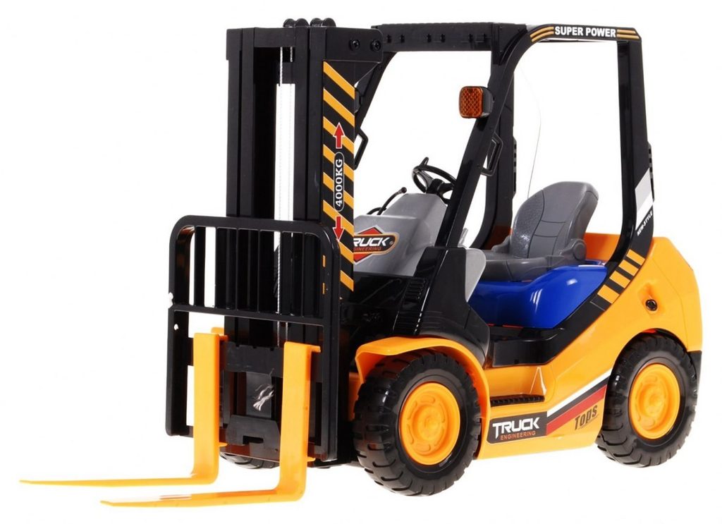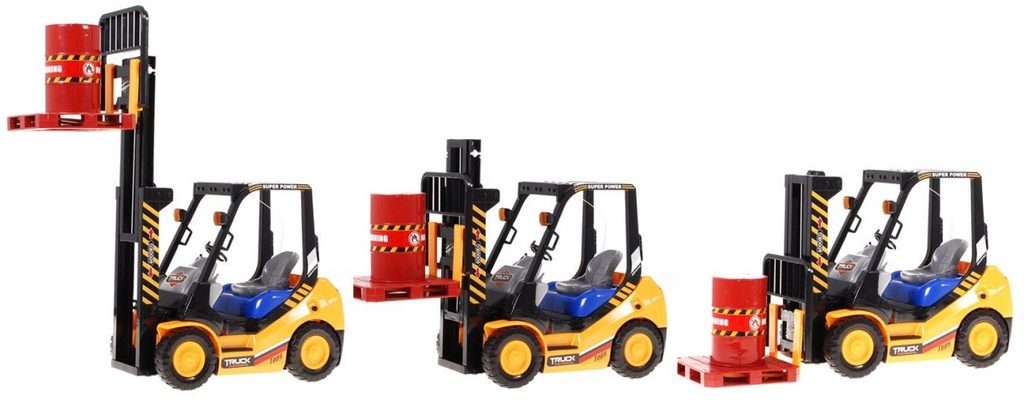 Vysokozdvižný vozík na dálkové ovládání s dálkovým ovládáním 2,4G umožnuje jízdu dopředu a dozadu, má otáčecí kola doprava a doleva a pohyblivé přední vidle, které lze zvedat nahoru a dolů. Jízda je doprovázena světelnými efekty. Ovládání je velmi jednoduché pomocí ovladače se 4 tlačítky. Součástí balení je akumulátor a USB nabíječka, imitace palety a barelu. Dálkové ovládání je napájeno bateriemi, které nejsou součástí balení. Je vyroben z plastu a má certifikaci CE.