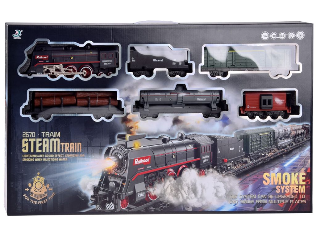 XXL vláčkodráha Steam Train na baterie učí dětí představivost a podporuje kreativitu. Vláčkodráha je kompletně vybavená, naleznete zde lokomotivu, která po na nalití vody kouří a vydává zvukové efekty, několik typů vagónů, stromky, koleje včetně křížení a stromky. Vše je vyrobeno z plastu bez ostrých hran. Hračka je určena pro děti od 36 měsíců věku.