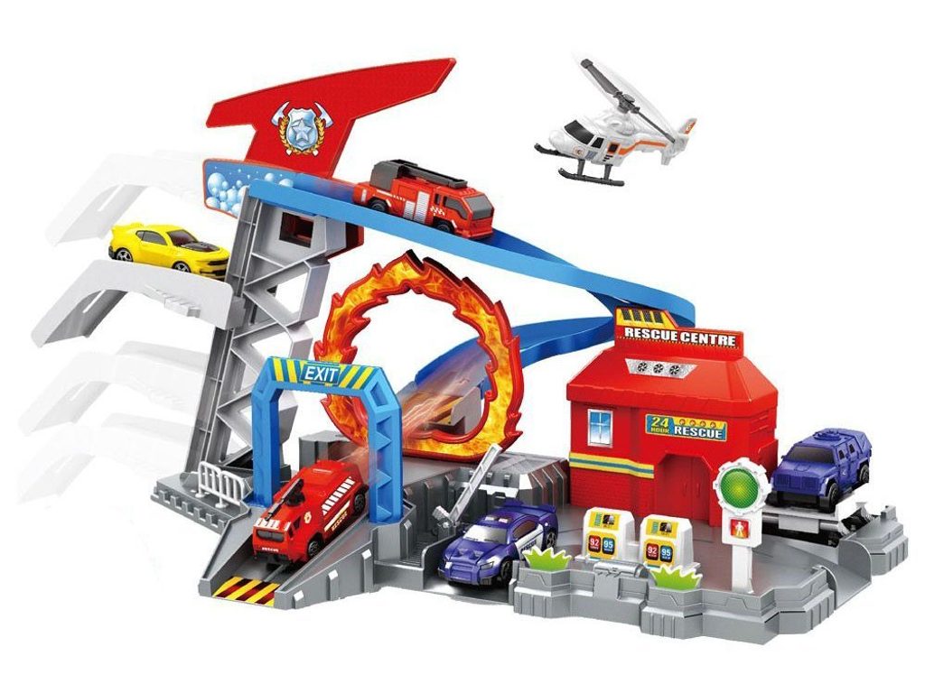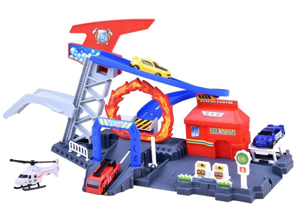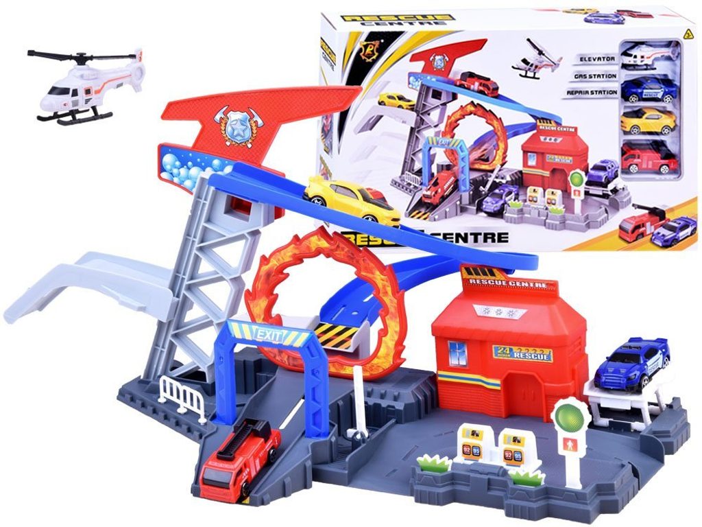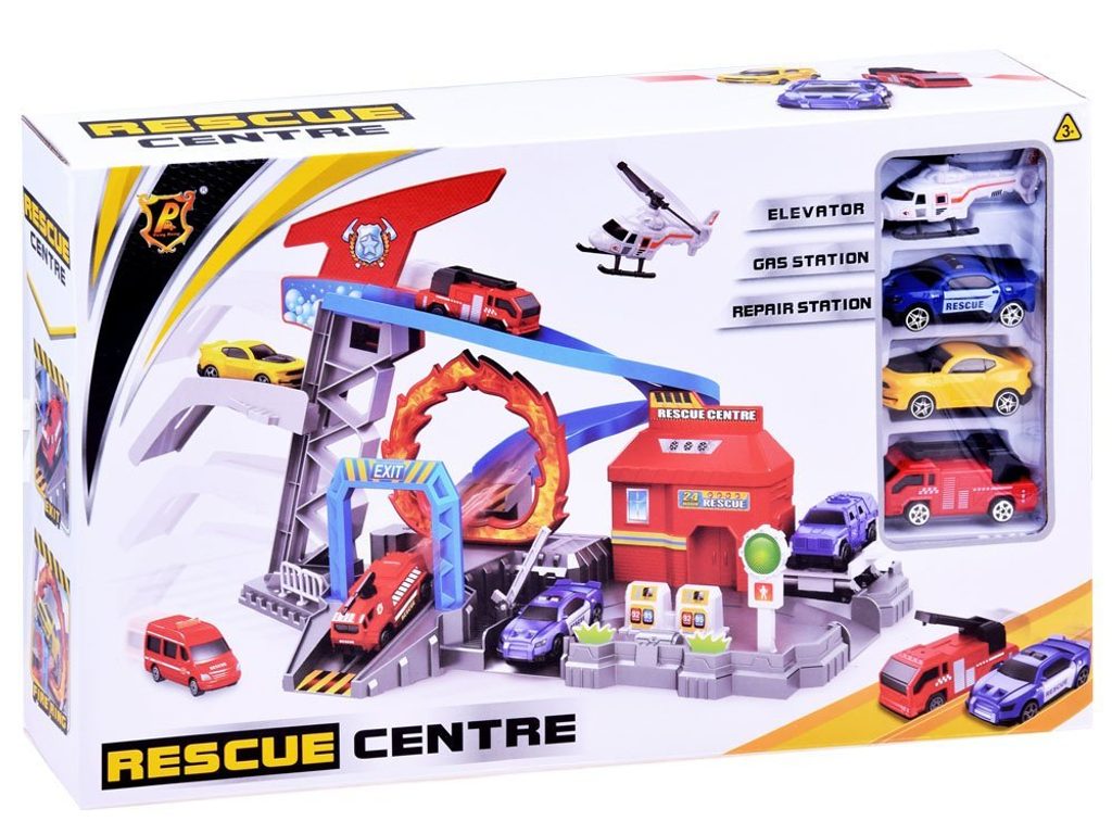 Kompletně vybavené záchranné centrum se 3 autíčky, helikoptérou a příslušenstvím Rescue Centre. Součástí centra je pohyblivý zvedák aut, výtah na ruční pohon, skluzavka, benzínové stojany, semafor, závora a hlavní budova. Mladý motoristický nadšenec zde nalezne vše co potřebuje. Hračka je vyrobena z plastu bez ostrých hran. Je učena pro děti od 3 let věku.