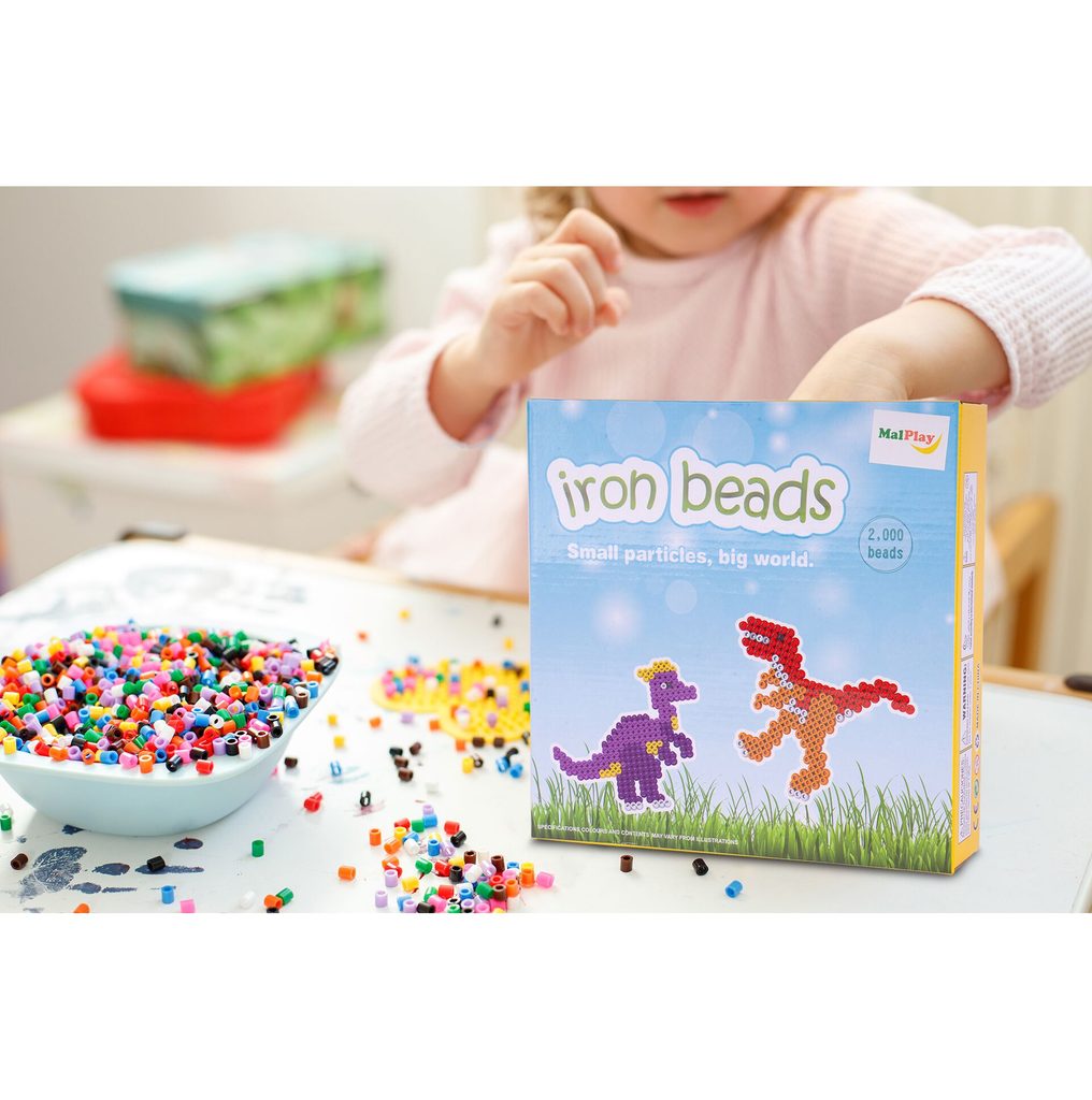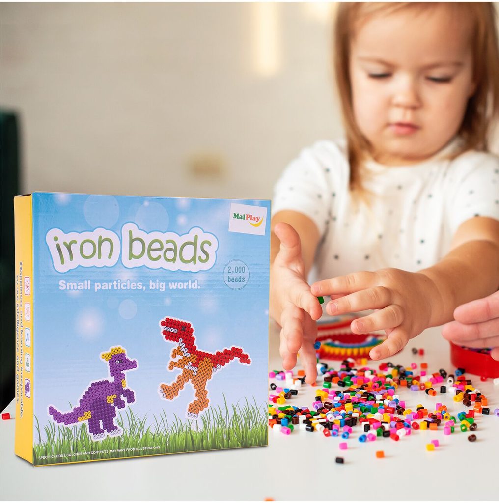 Sada barevných zažehlovacích korálků Iron Beads - Zvířátka učí dětí představivost, podporuje kreativitu a manuální dovednosti. Sada obsahuje celkem 2000 ks korálků v různých barevných odstínech. Lze z nich vytvářet různé vzory, tvary, zvířátka, 3D postavičky, které se potom zažehlí přes přiložený žehlící papír. Hračka je určena pro děti od 6 let věku.