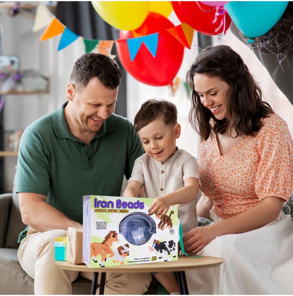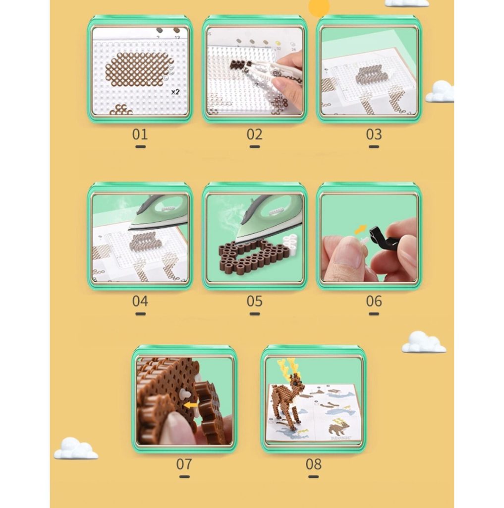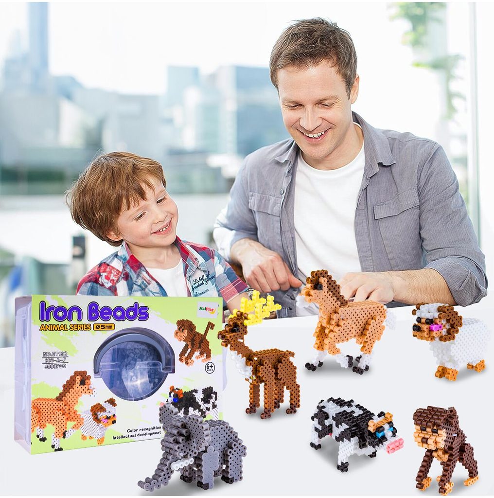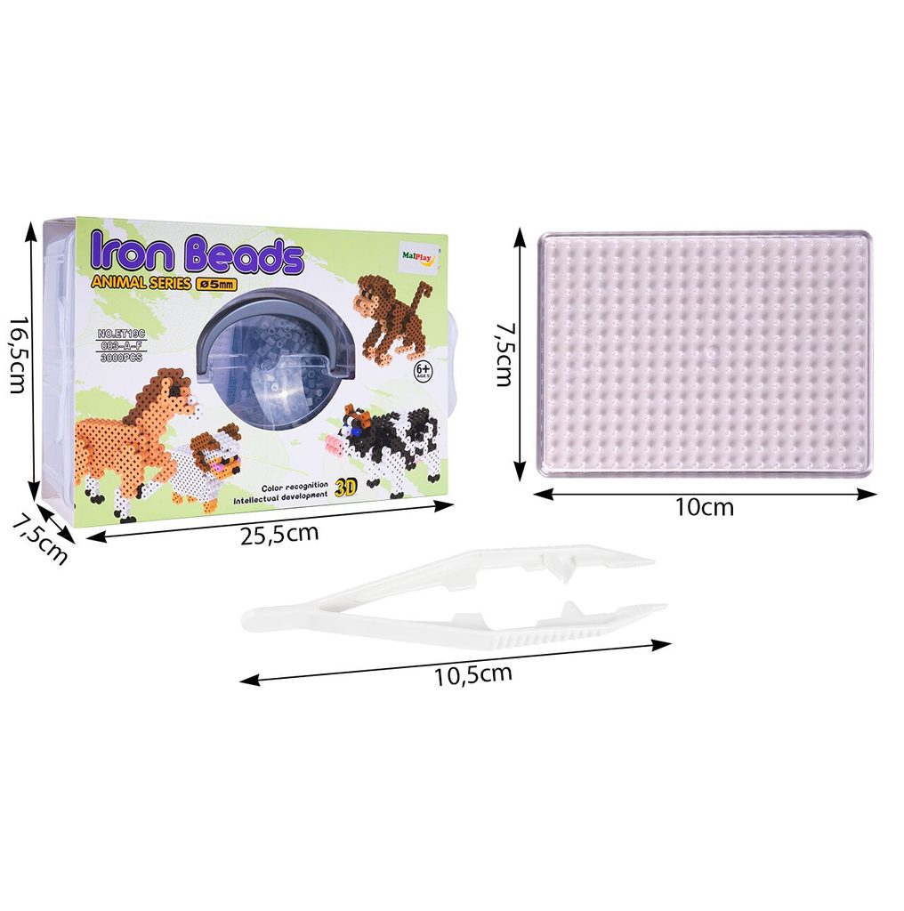 Sada barevných zažehlovacích korálků Iron Beads - 3D Zvířátka učí dětí představivost, podporuje kreativitu a manuální dovednosti. Sada obsahuje celkem 3000 ks korálků v různých barevných odstínech. Lze z nich vytvářet různé 3D zvířátka i jiné vzory které se potom zažehlí přes přiložený žehlící papír. Hračka je určena pro děti od 6 let věku.